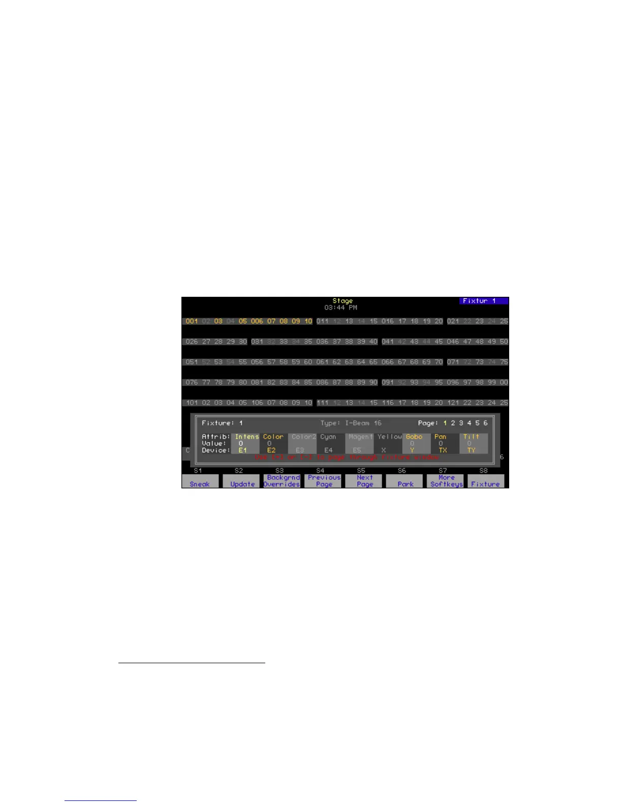 • Page numbers are shown in white if any of the fixture’s attributes are