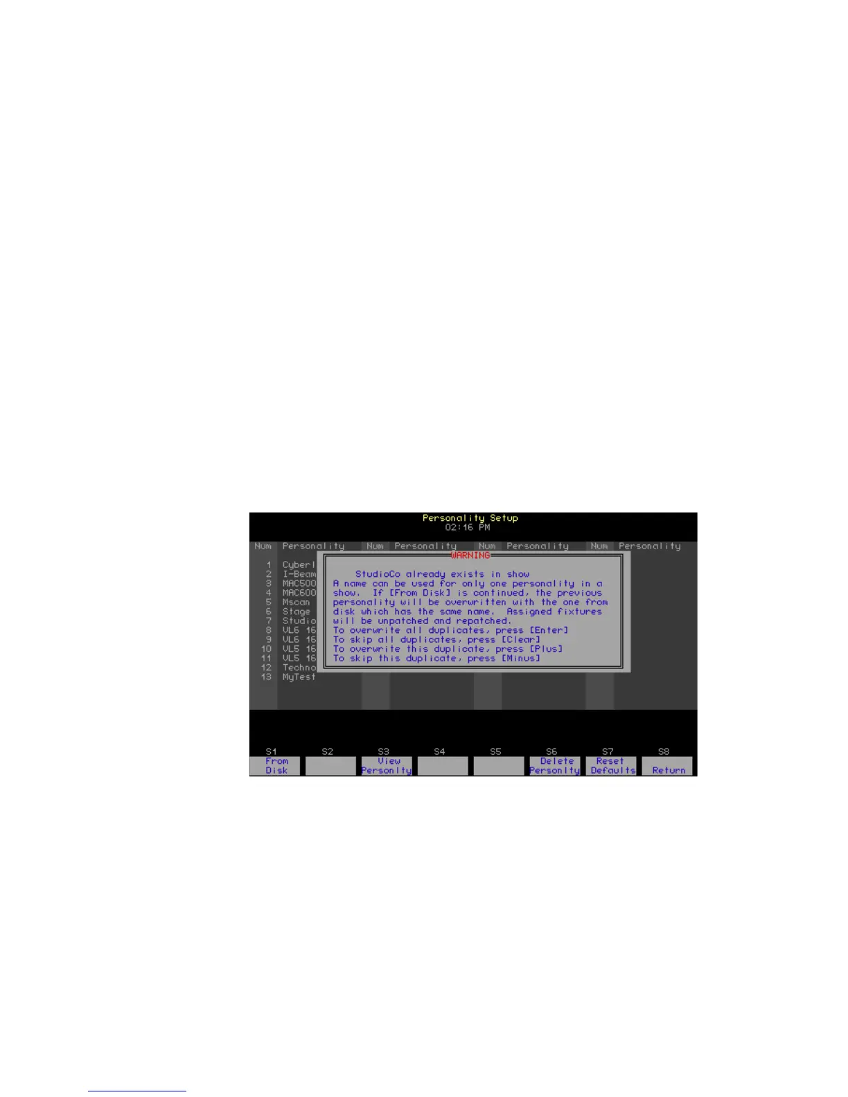 2. From the Personality Setup display, Press [S1], From Disk, [Enter].
