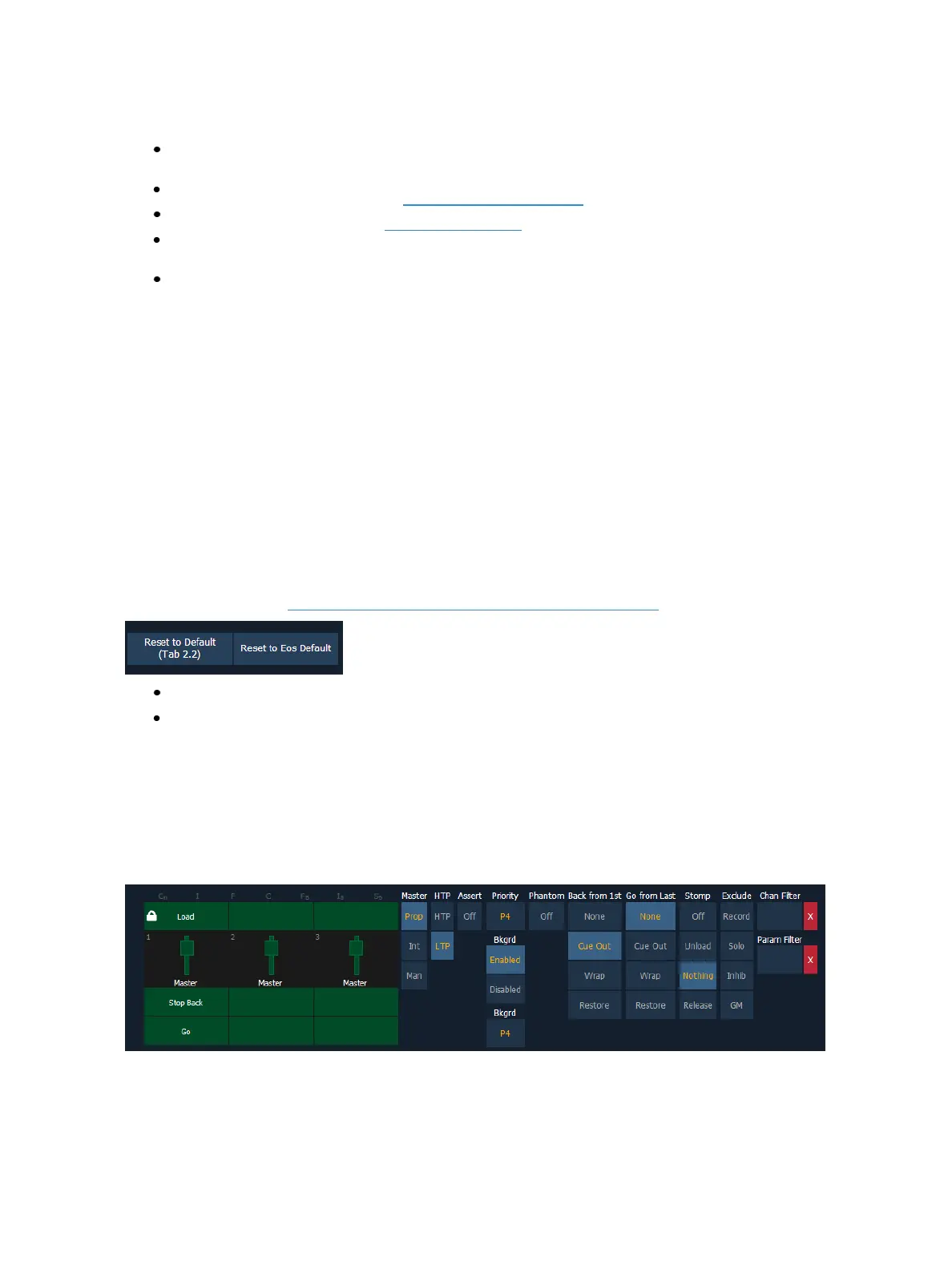 Reset to Eos Default - returns all settings to the Eos defaults.