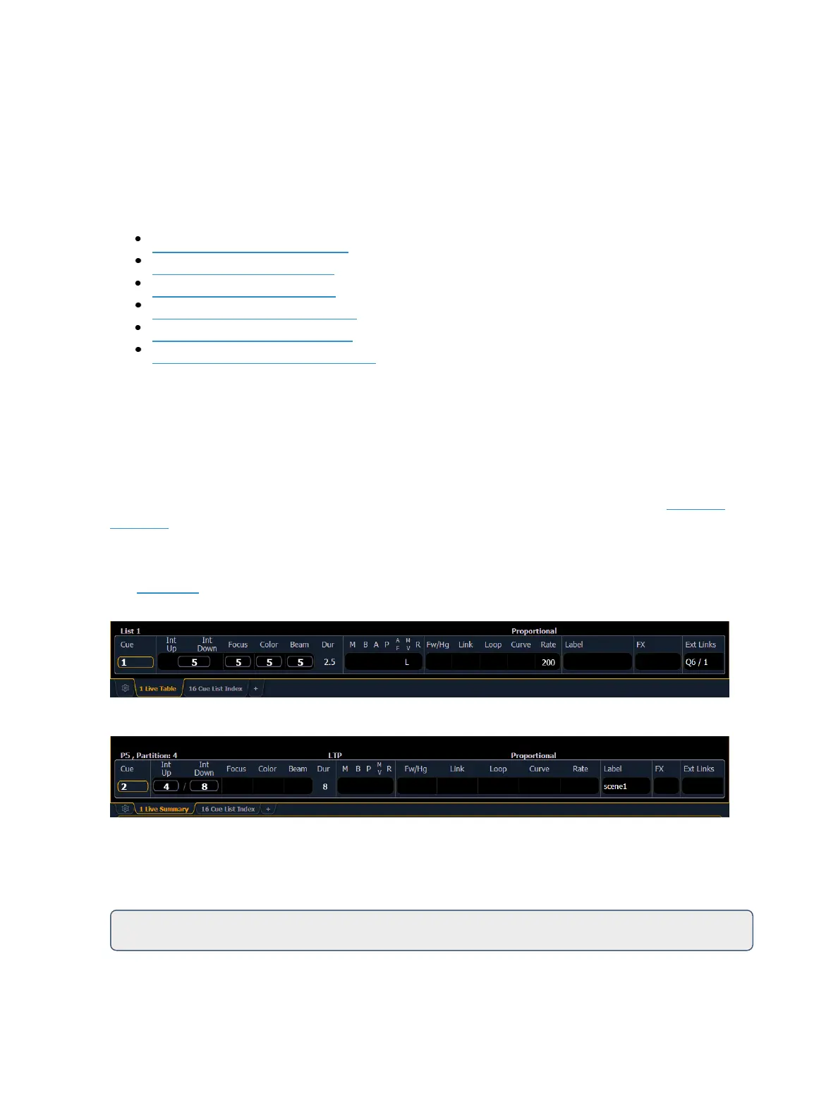 played back. When entering Blind for cues, the selected cue will be selected and displayed. Changing