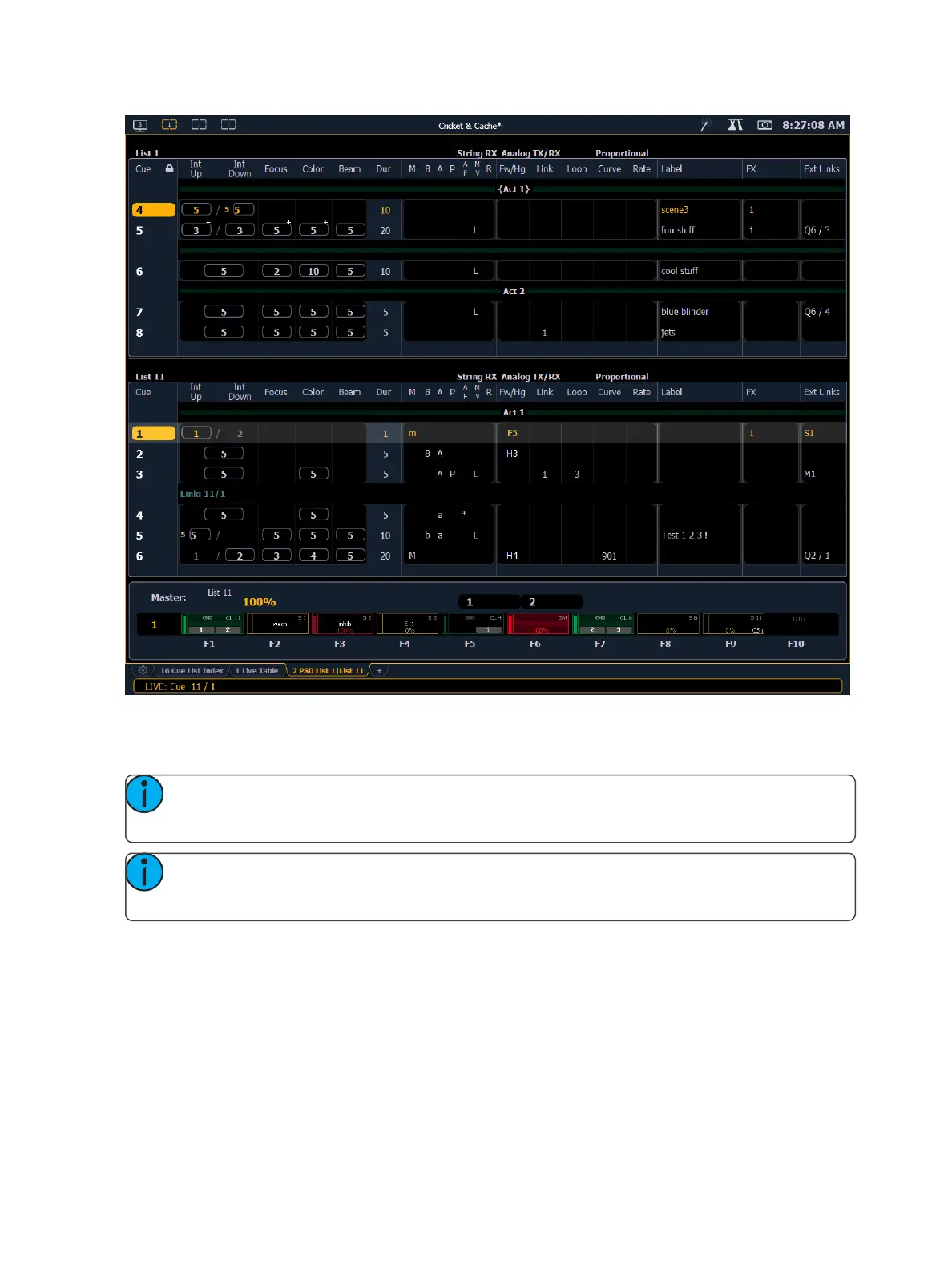 Note: To page the Playback Status Display (PSD) if focus is on a Live/Blind tab, use [Shift] &