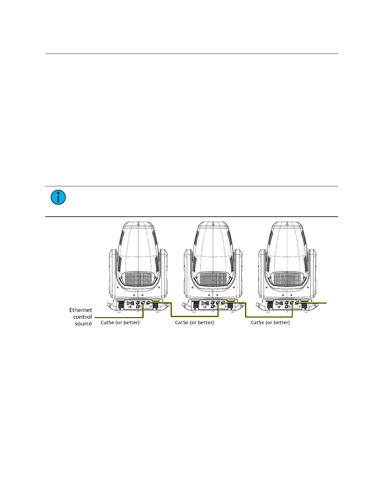 not connect more than 20 fixtures in one Ethernet control run when the fixtures are