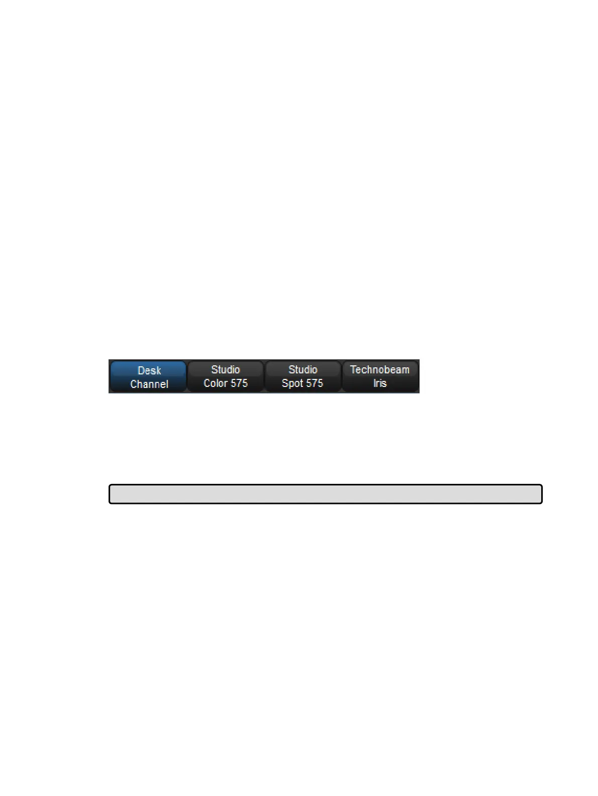 Fixture, [Studio Color 57 5], 1 : when you press the Fixtur e key, types of available