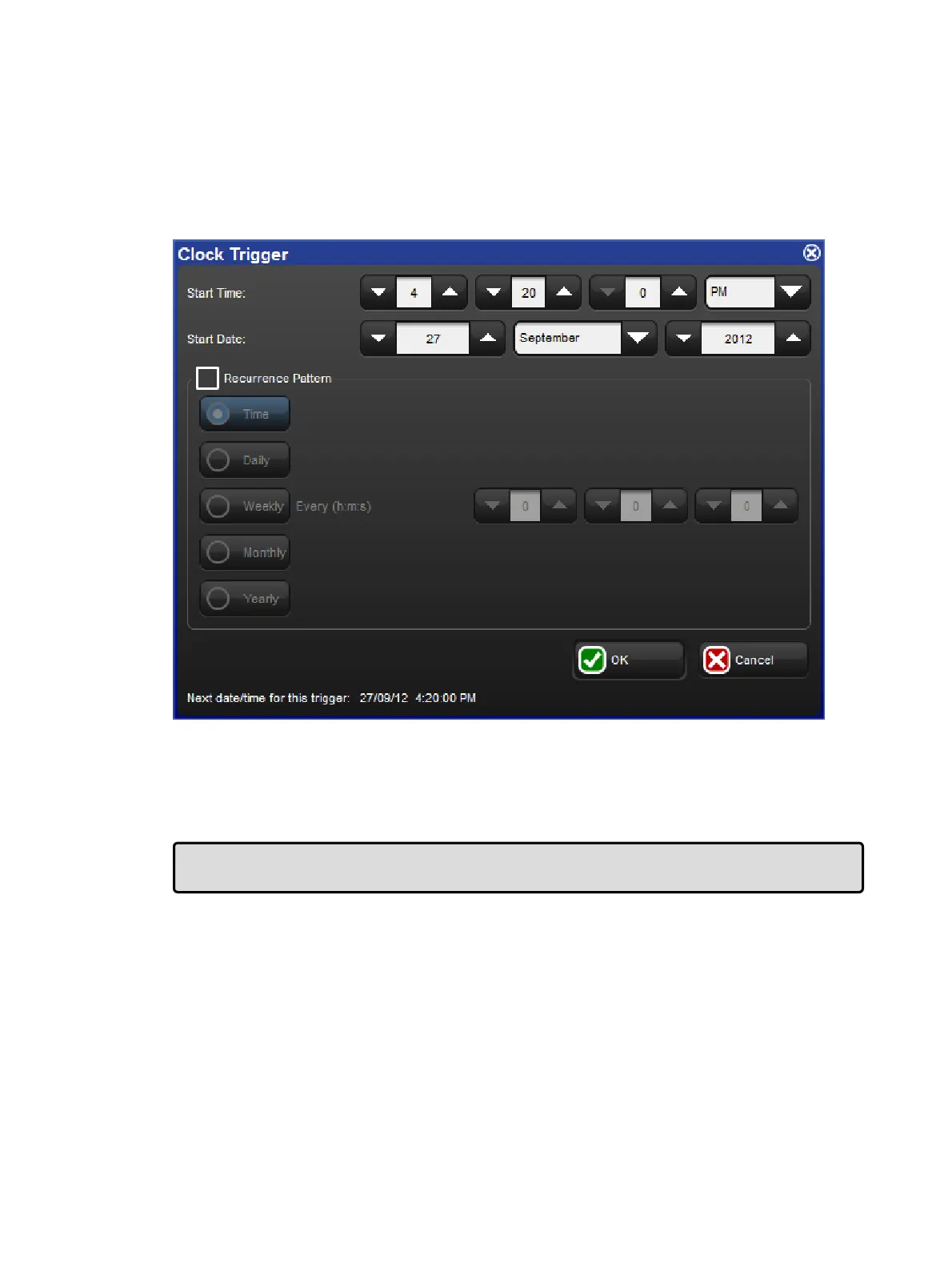 Tip: The next valid trigger date and time is shown at the bottom of the Clock Trigger