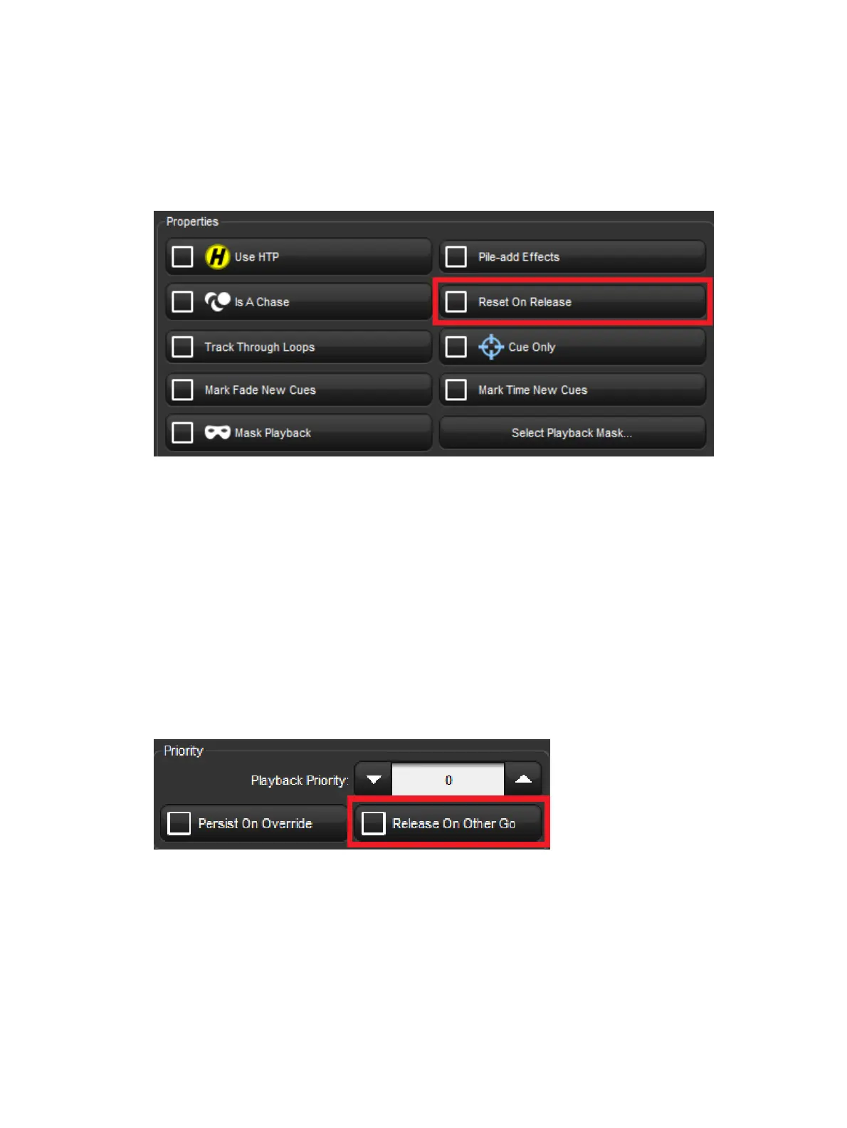 is pressed again. You can assign Reset on Release in the Playback O ptio ns window of