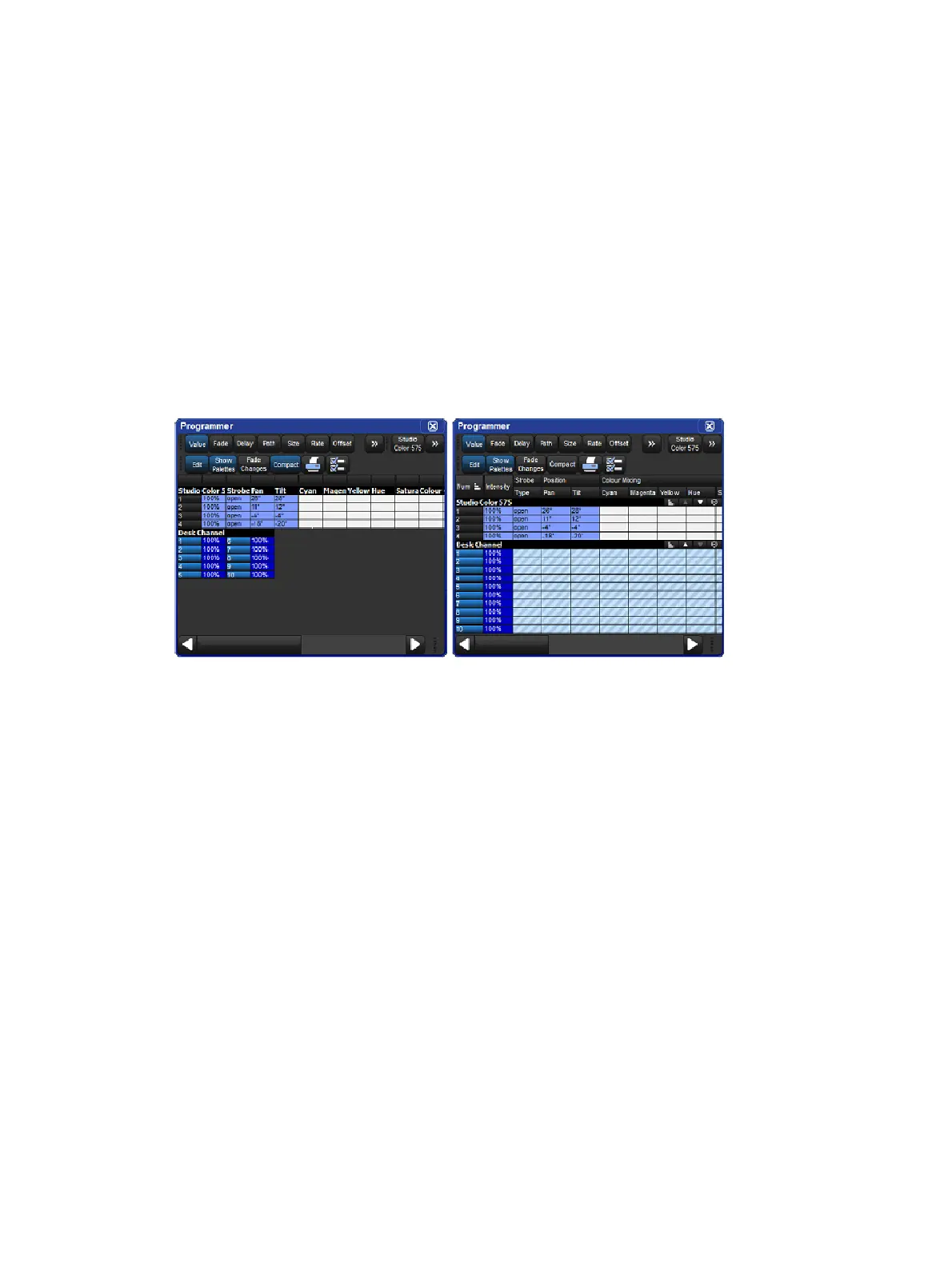 compact mode, fixtures only have columns for the actual parameters that they have, rather