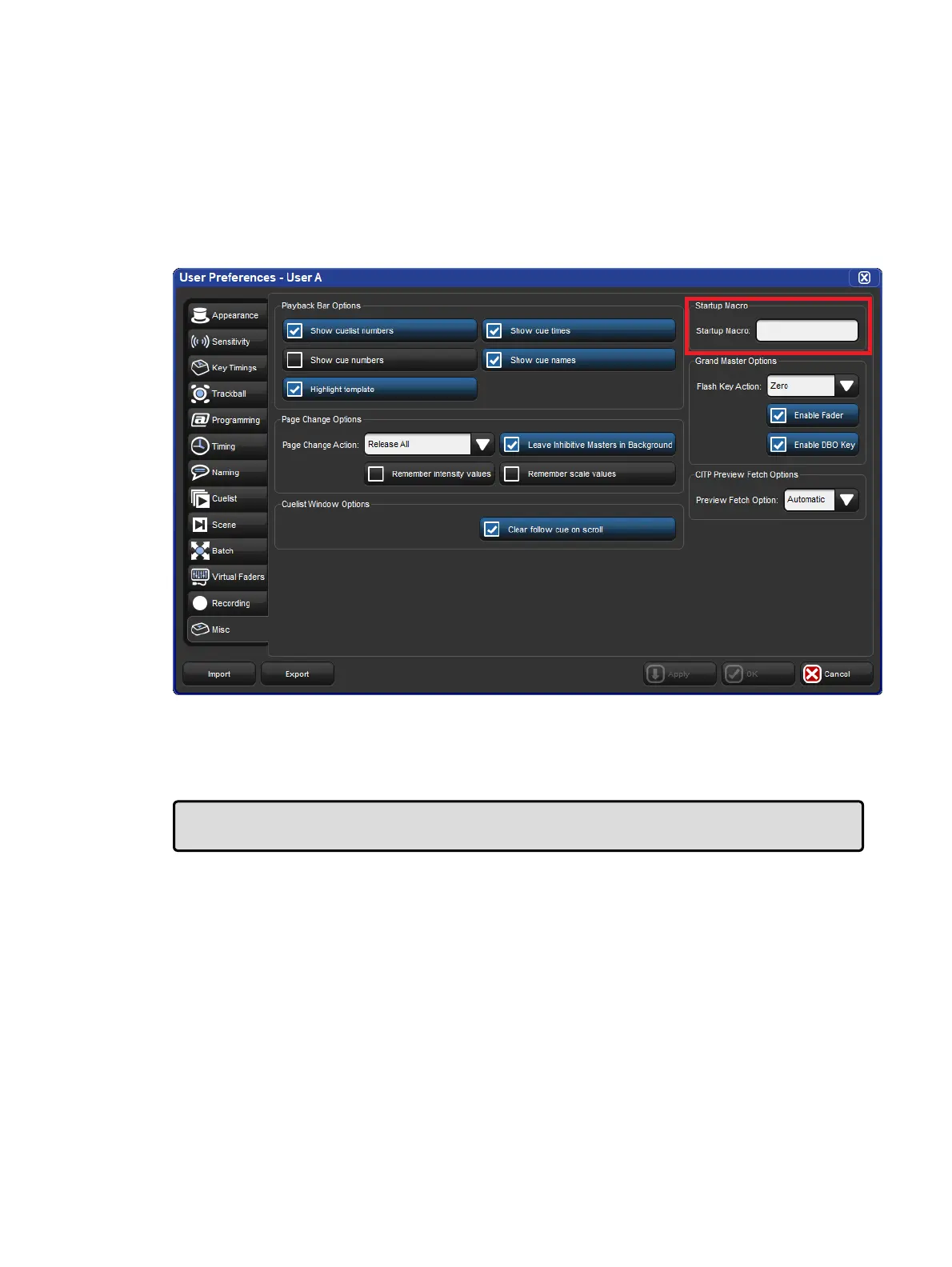 pages. Startup comment macros are assigned in the Misc pane of the User Pr eferences