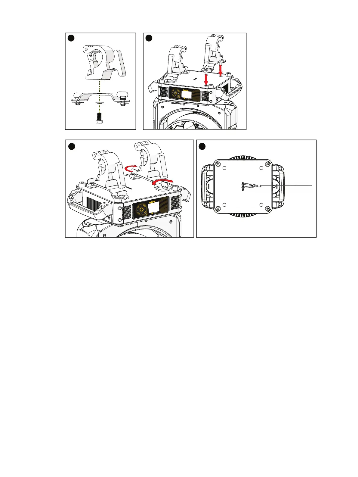 6. Attach the fixture to the installation location using the installed clamps, using the clamp