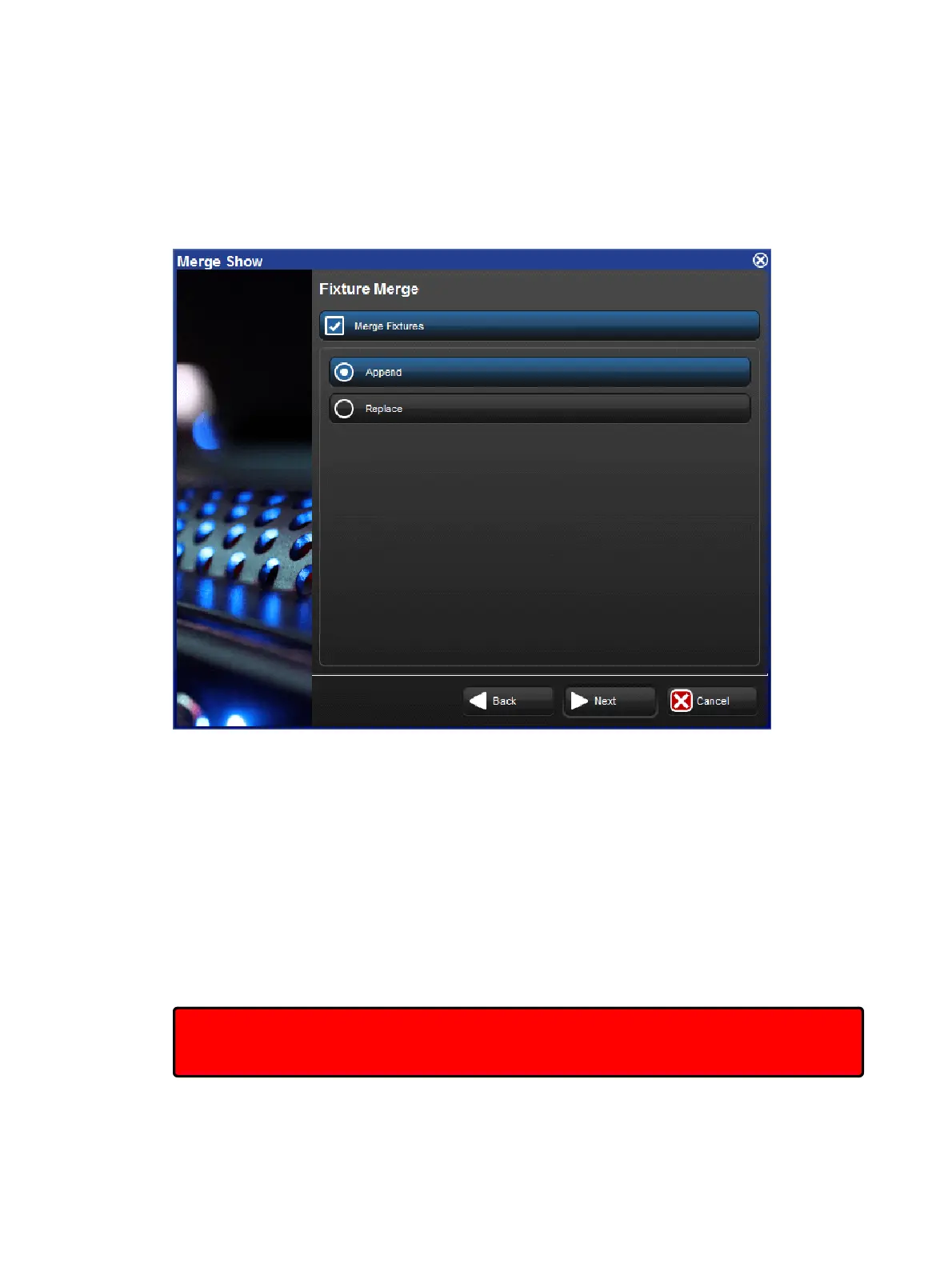 fixture. If no match is made, the source fixture is appended to the current show as
