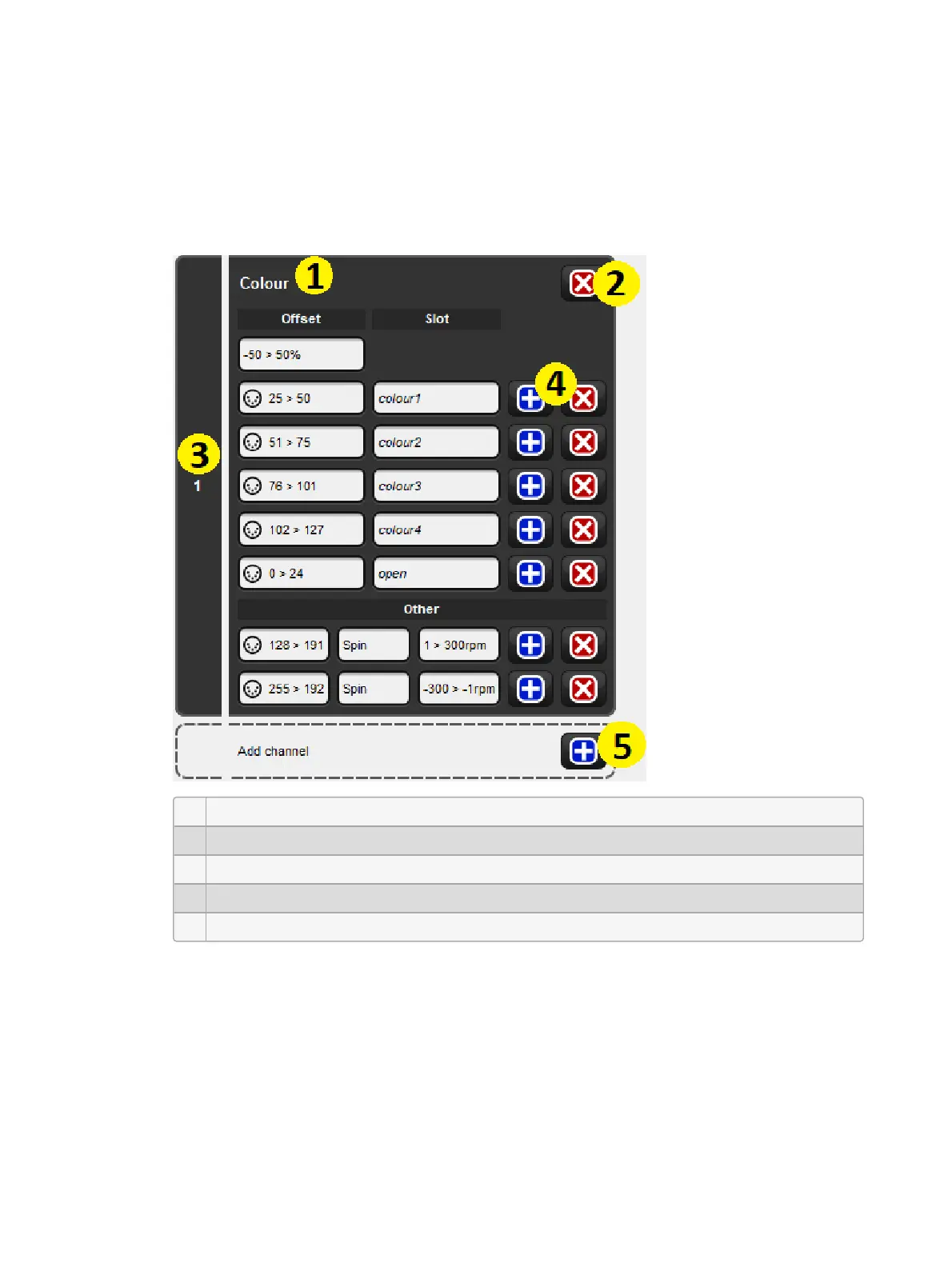 the DMX channels of the fixture and are called DMX channel blocks. The diagram below