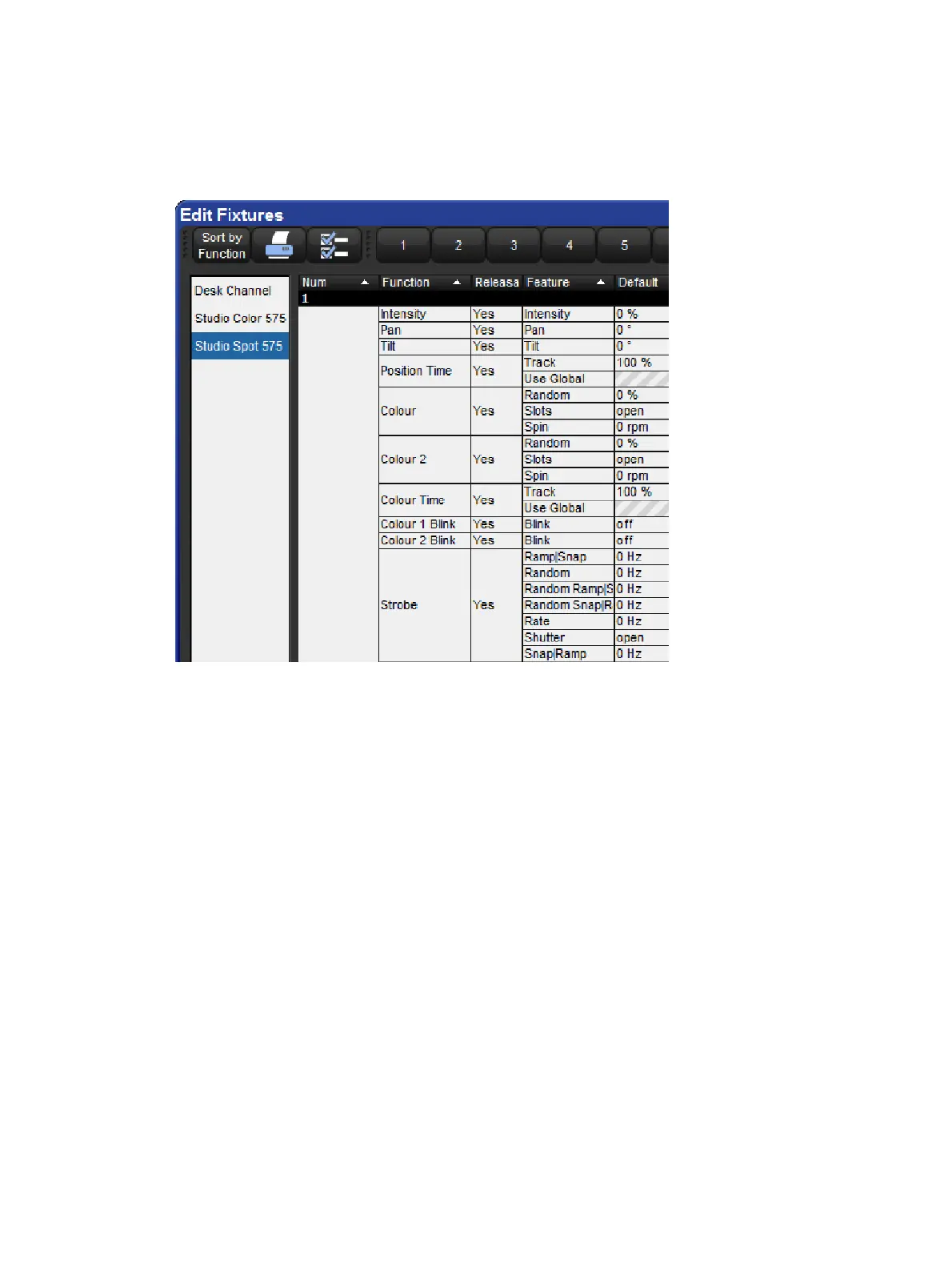 value for the pan parameter of all the Studio Color 575 fixtures in the show.