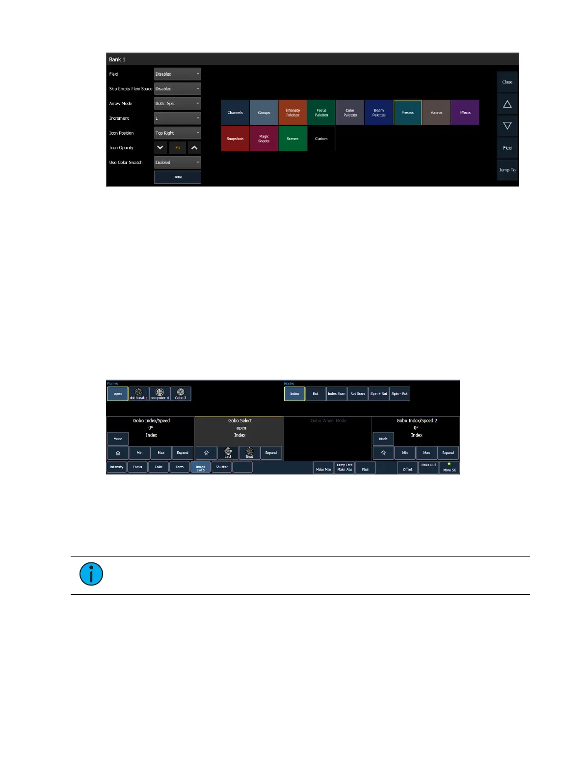 The encoder controls display allows you to cycle through parameter steps (if available). You