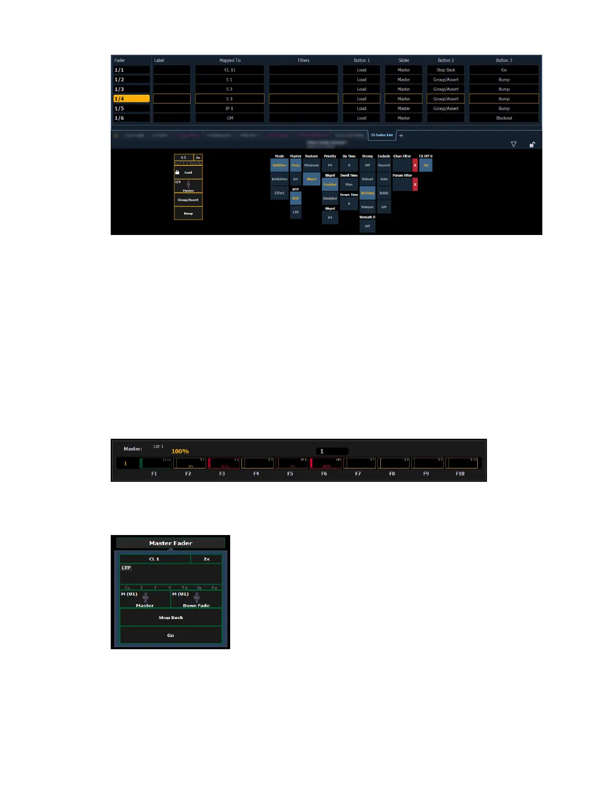The fader ribbon shows the fader color coding that is used in the fader configuration tools.