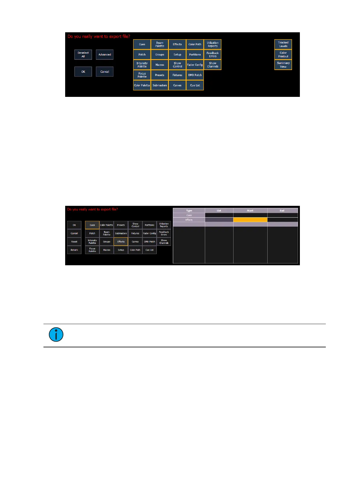 To reselect all show aspects, press the {Select All} button and all buttons will return to gray