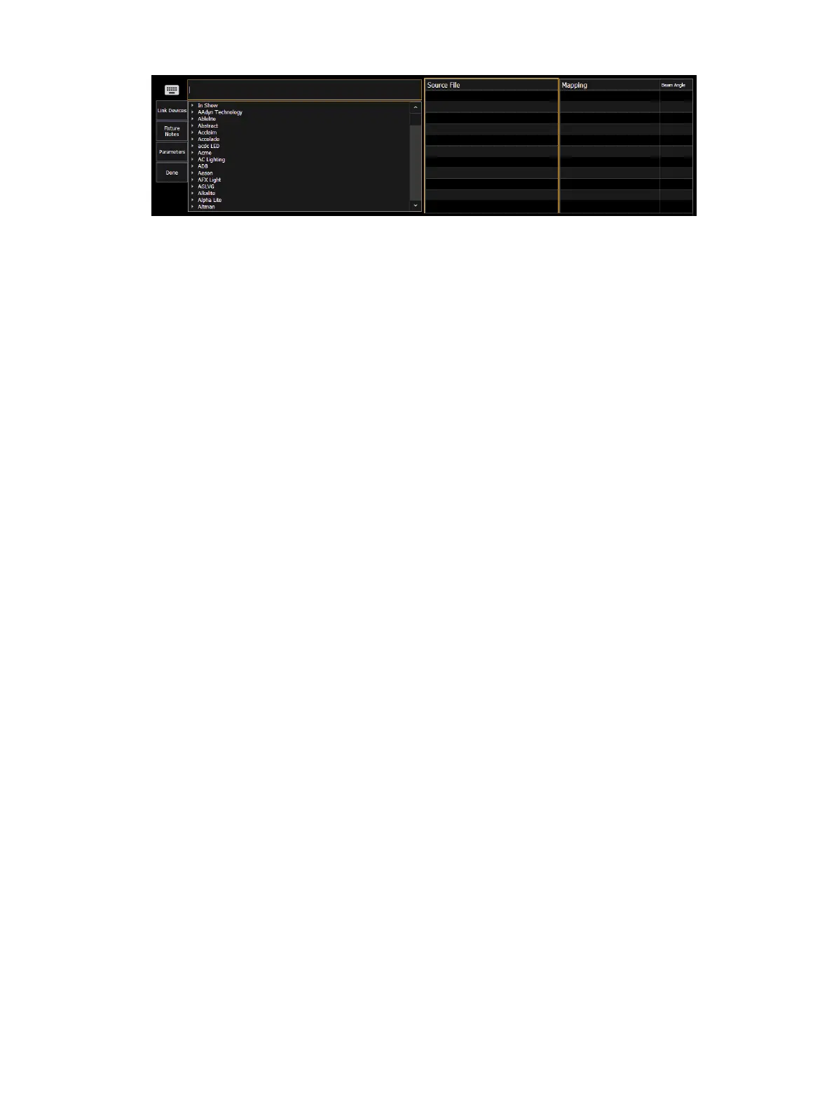 Select the Lightwright device and the match from the Eos column. Multiple Lightwright