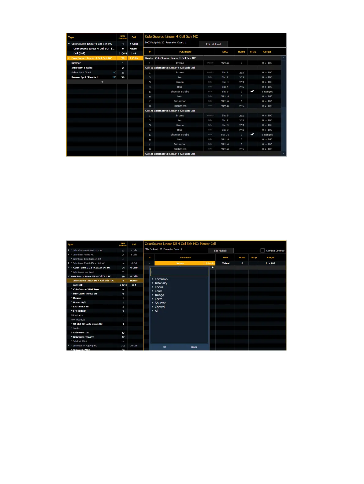 On the right, you can see the full personality of the selected multicell fixture. If you have the