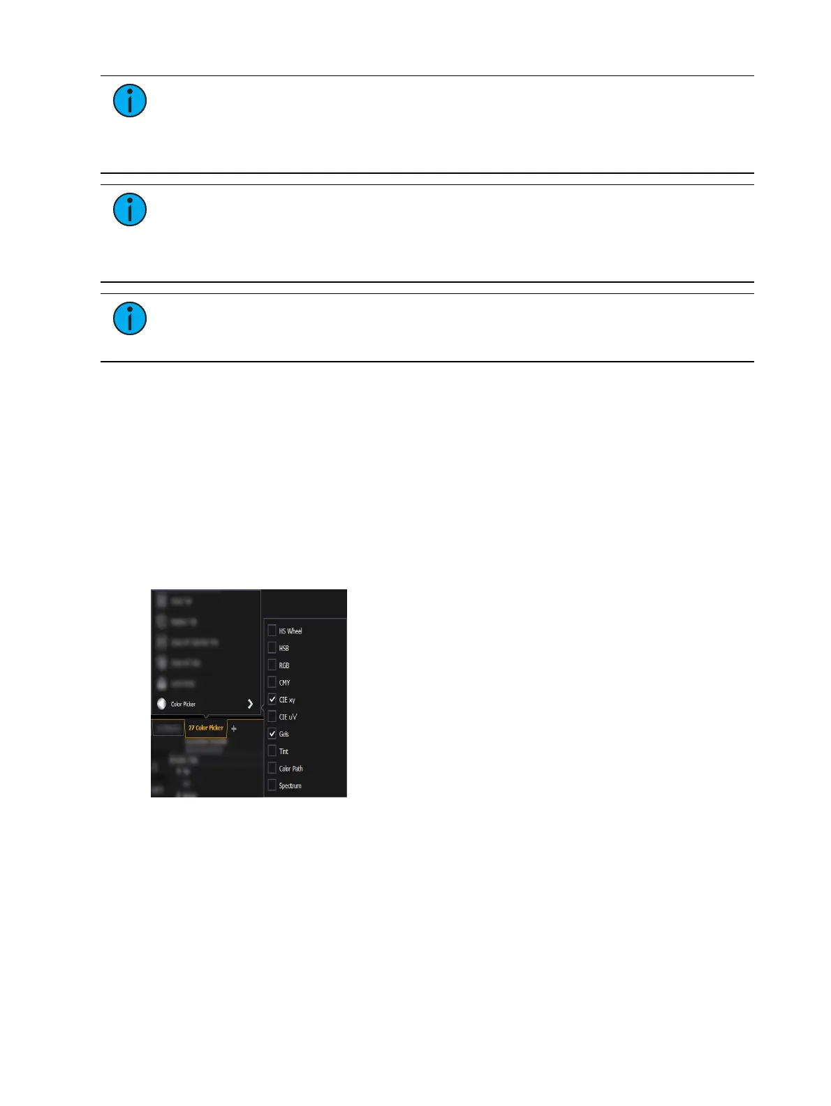 When the color picker is first opened, the CIE xy color space and the gel picker will open by