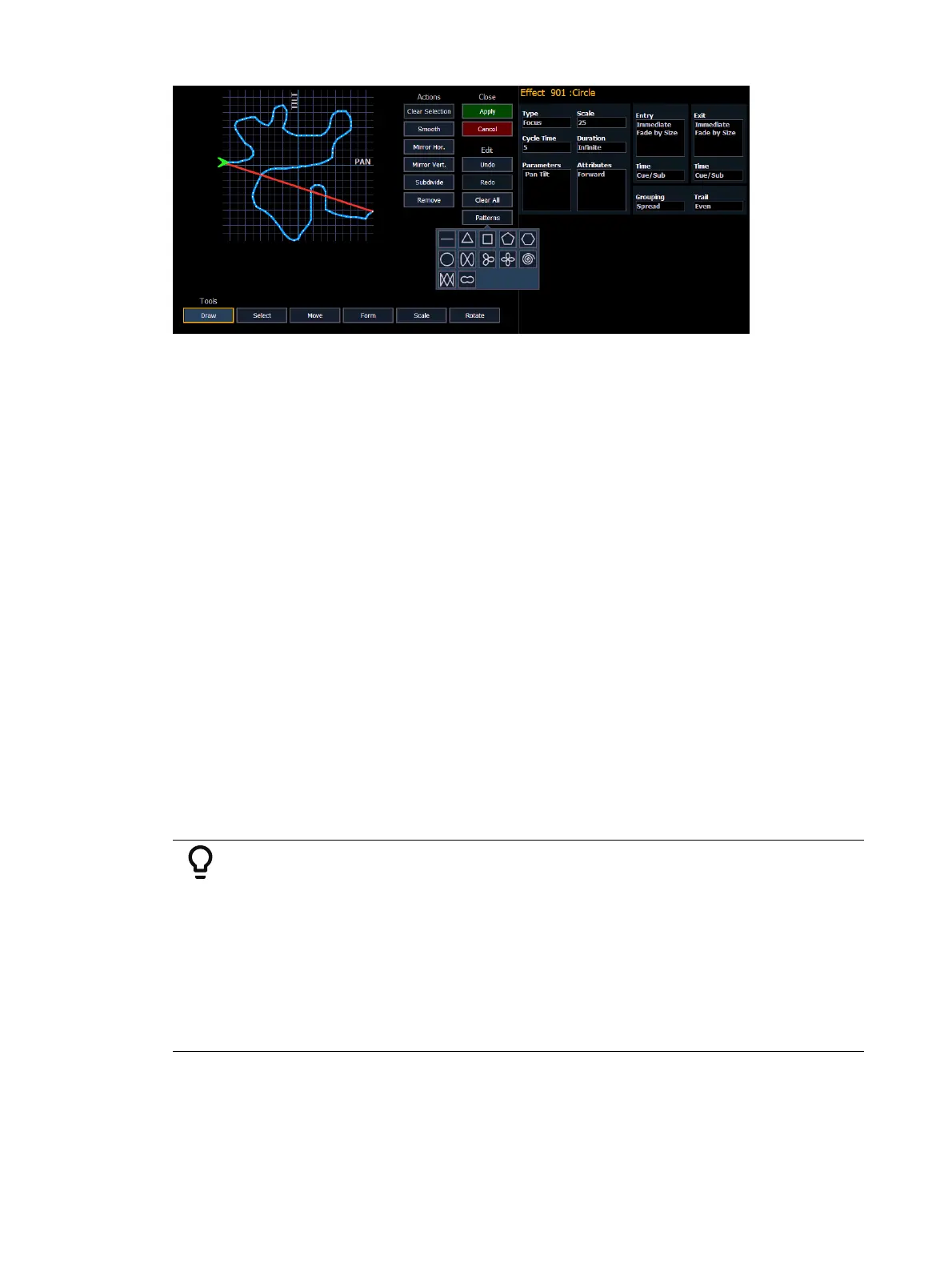 Draw - draw a new line for linear effects or append points to focus effects