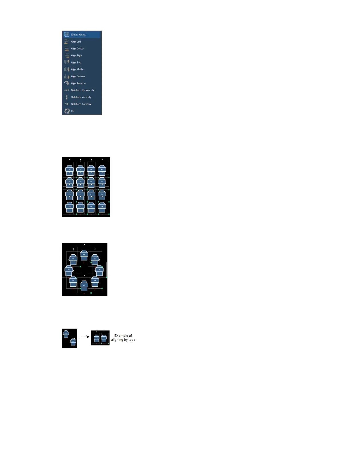 Lays out a rectangle array of objects. You can define the rows, columns, and spacing.