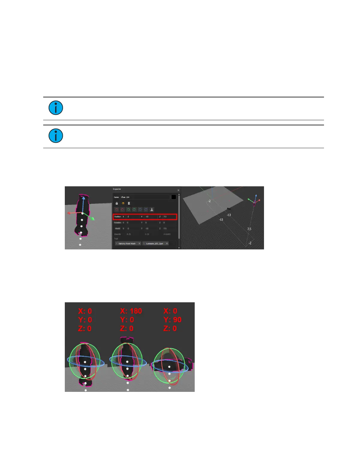 Orientation data reflects how the fixture is rotated. The values for X, Y, and Z represent a