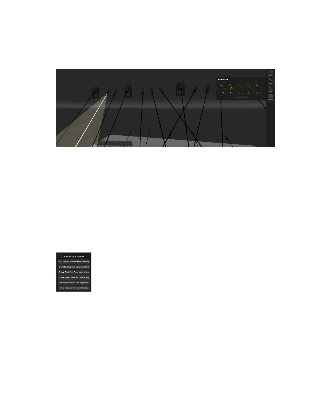 Stick Beams draws a line from the fixture to wherever the beam lands. Stick Beams do not