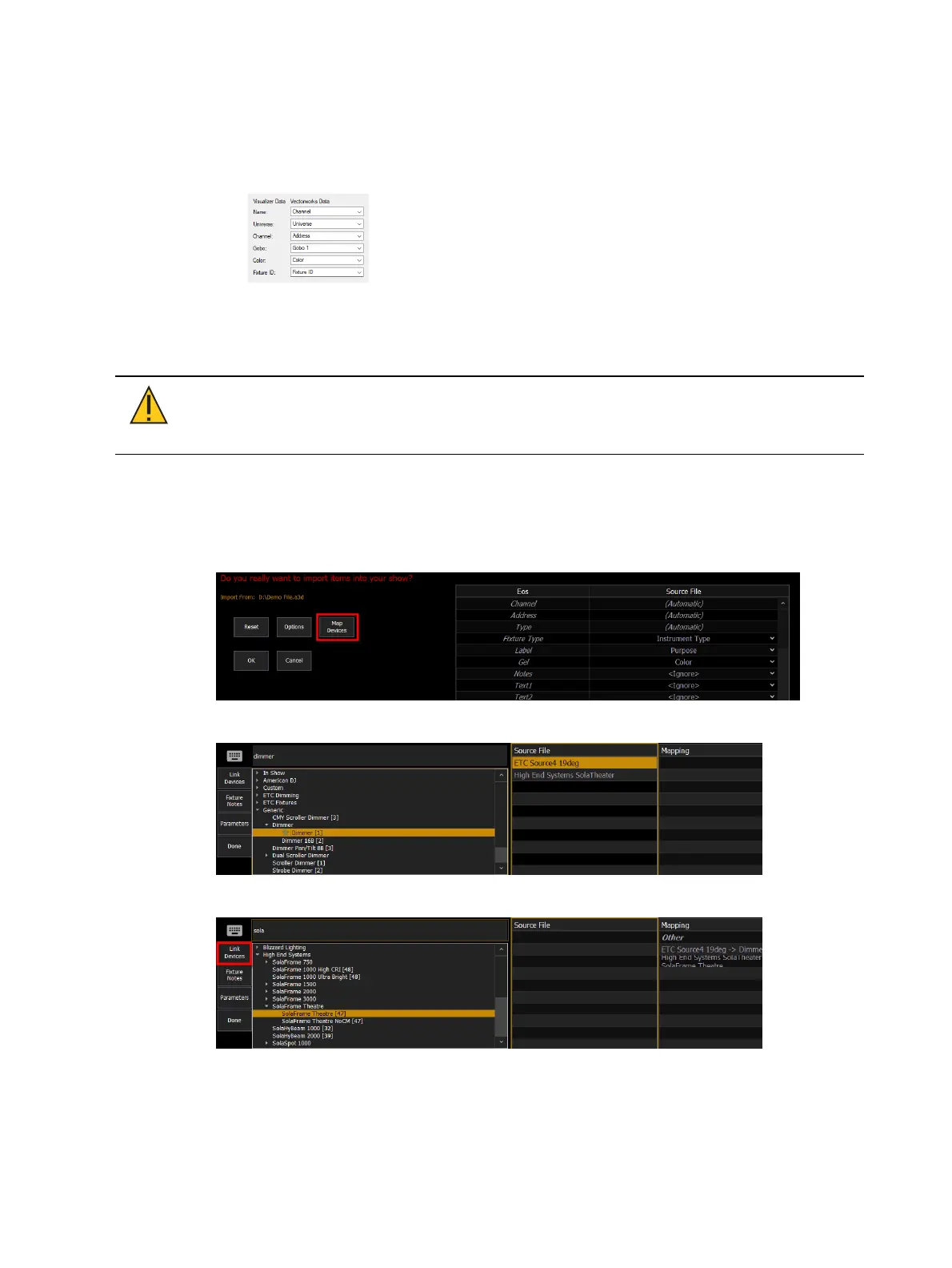 3. Select a device from the Source File column and choose its matching Eos fixture profile.
