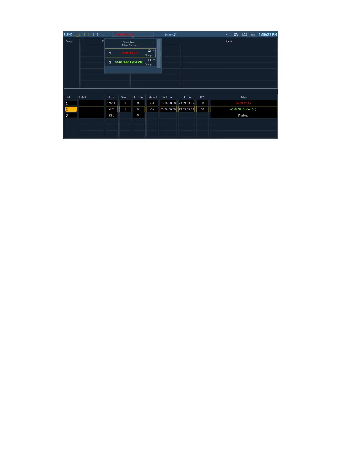 The internal and external clocks can be enabled separately for each time code list. If you