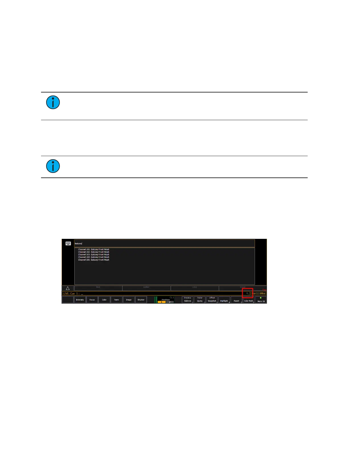This is the area where commands appear when entered. When in Live, this line is bordered in