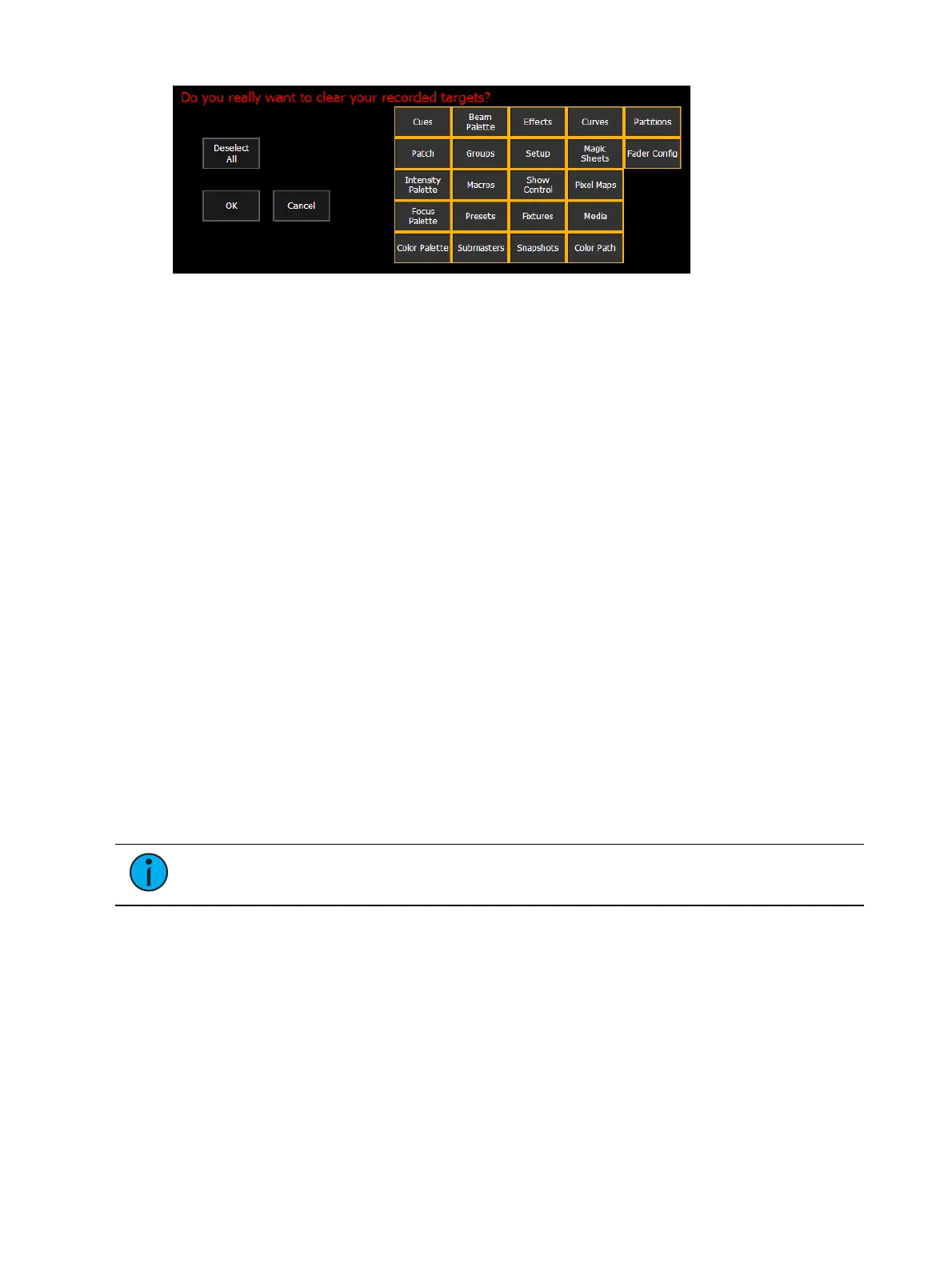 To deselect all of the targets, click the {Deselect All} button.