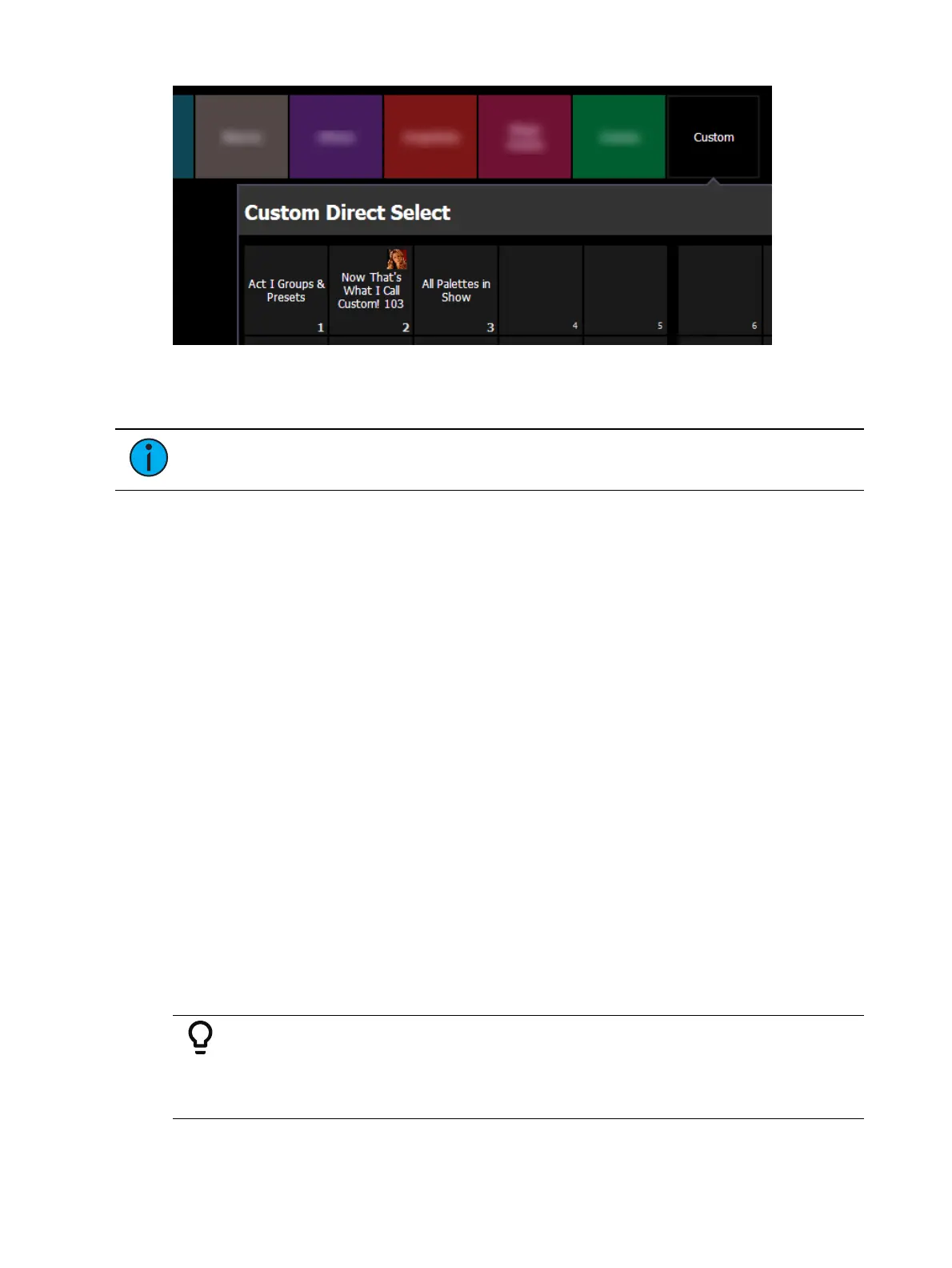 Once a custom direct select list is open, selecting an empty button will display a popup of the