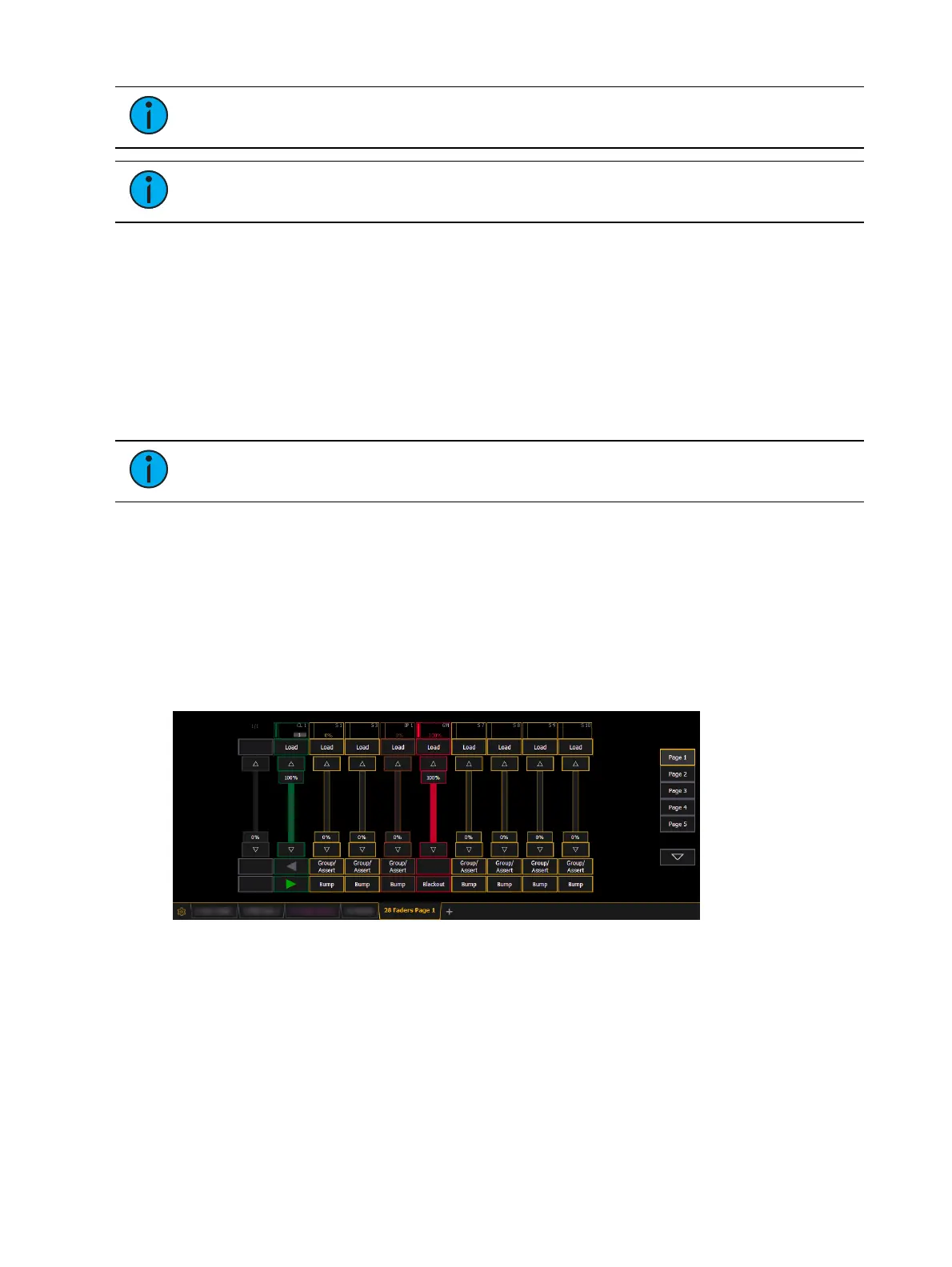 When a filter has been applied, an indicator will display in the fader ribbon. C will display for