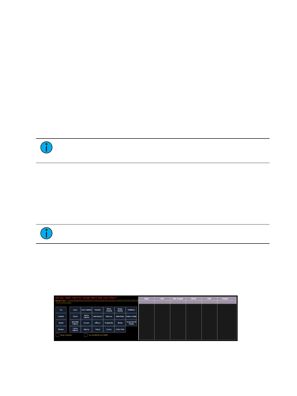 complete list of show components, press the {Advanced} key in the merge show loading