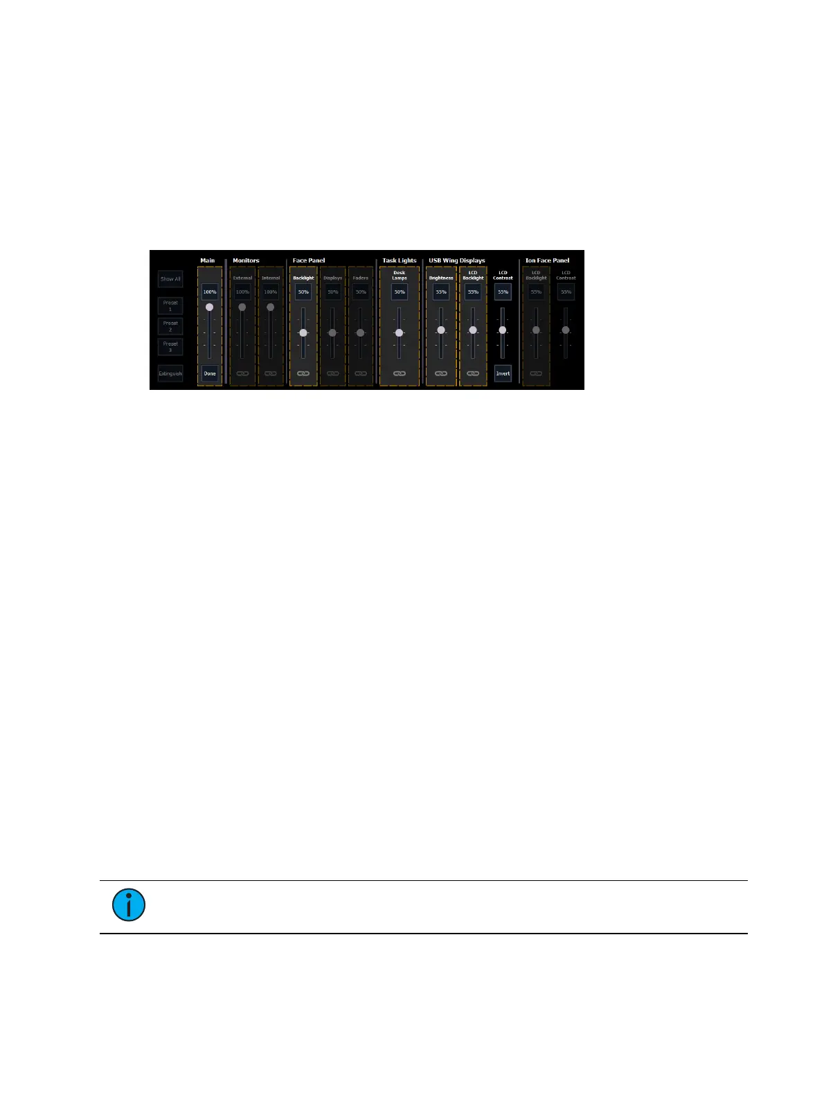 connected USB fader wings. Selecting {Invert} will invert the LCD. All sliders default to 55%.