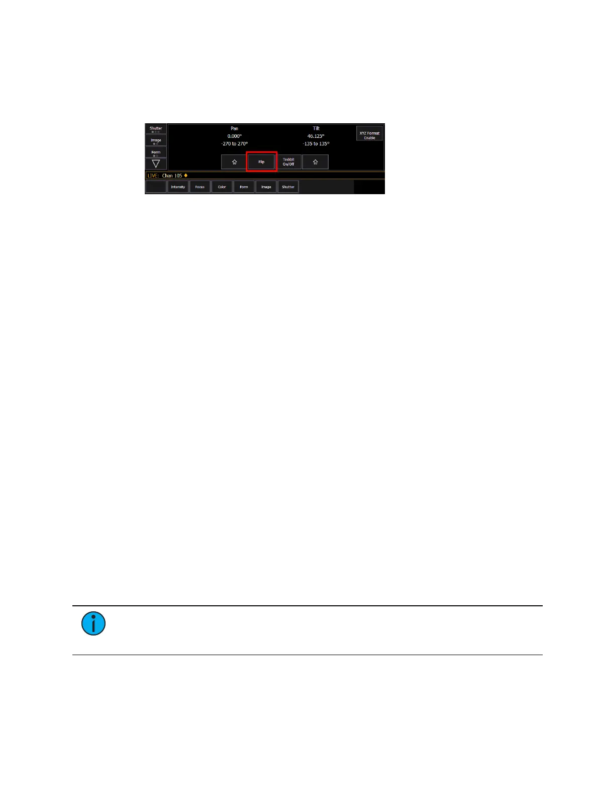 Do any of the fixtures pan more than 180 degrees?If so, press {Flip}and re-record (or