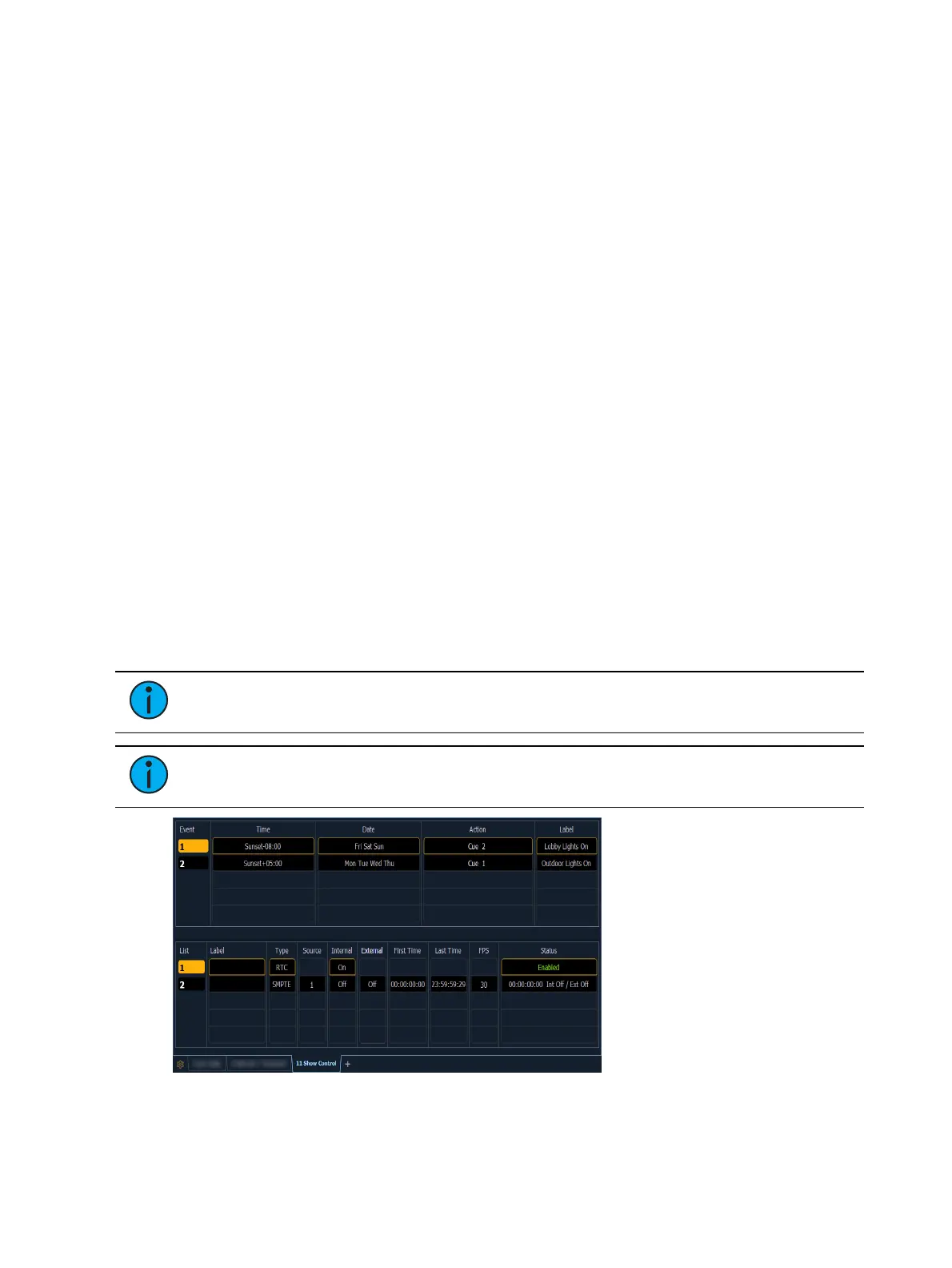 The Show Control Display allows for the creation of event lists, which are comprised of events.