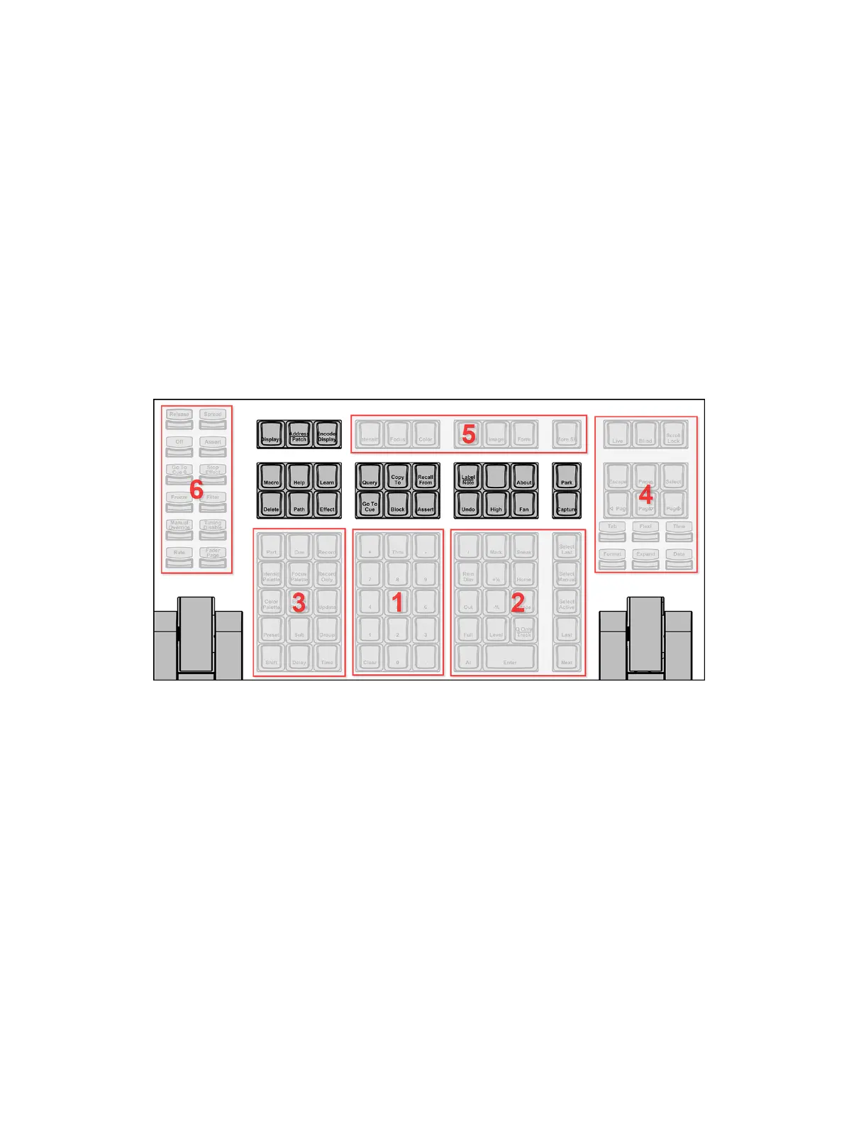 The hardkeys are divided into several sections based on their functionality.