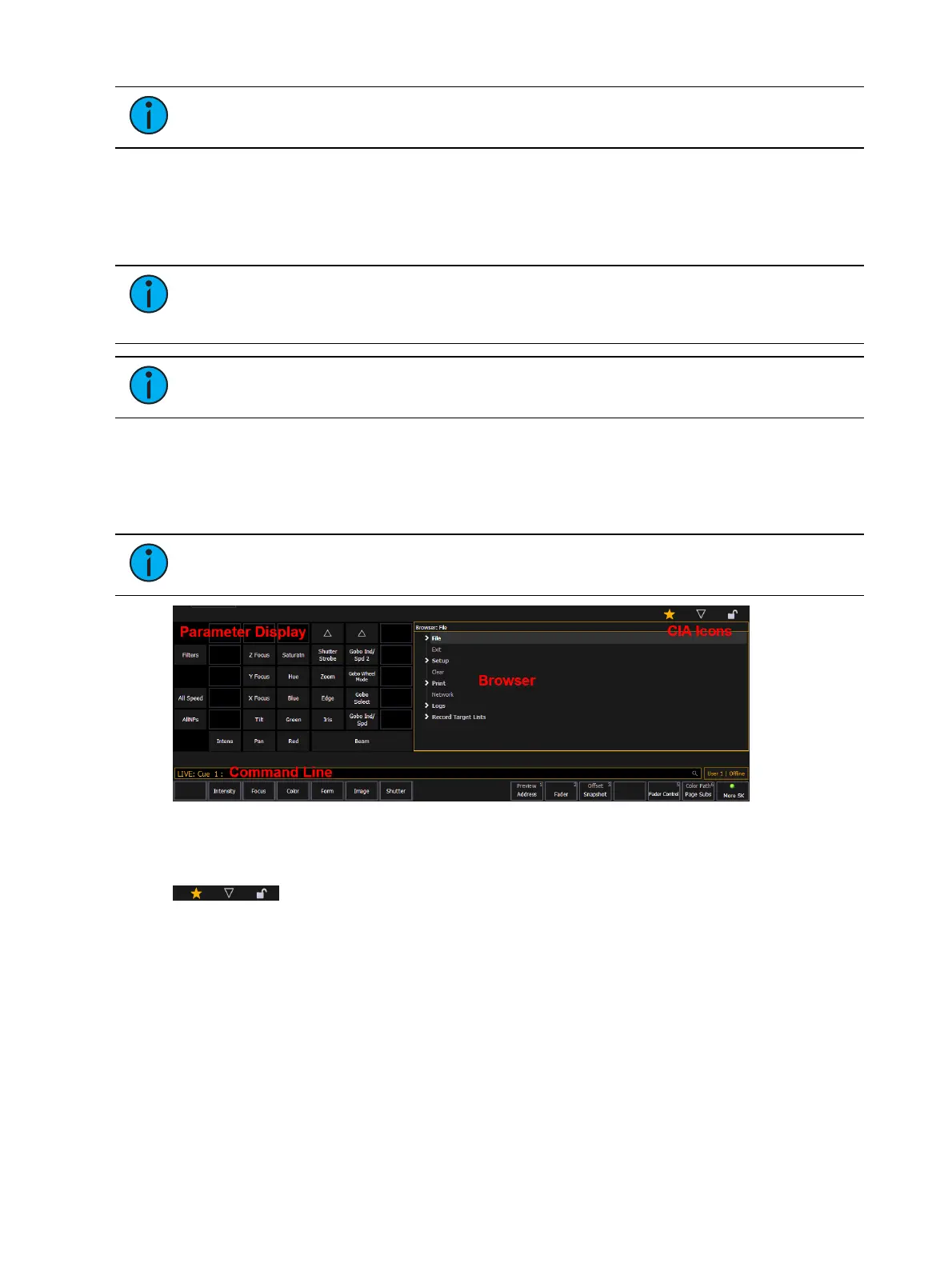 consists of three primary areas: the command line, the parameter display, and the browser.