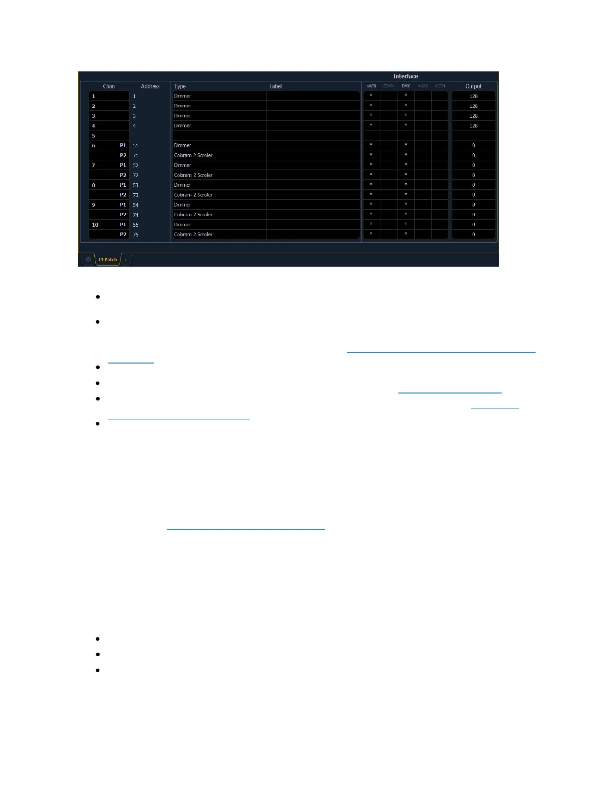 {Patch} - displays only the patched channels or addresses.