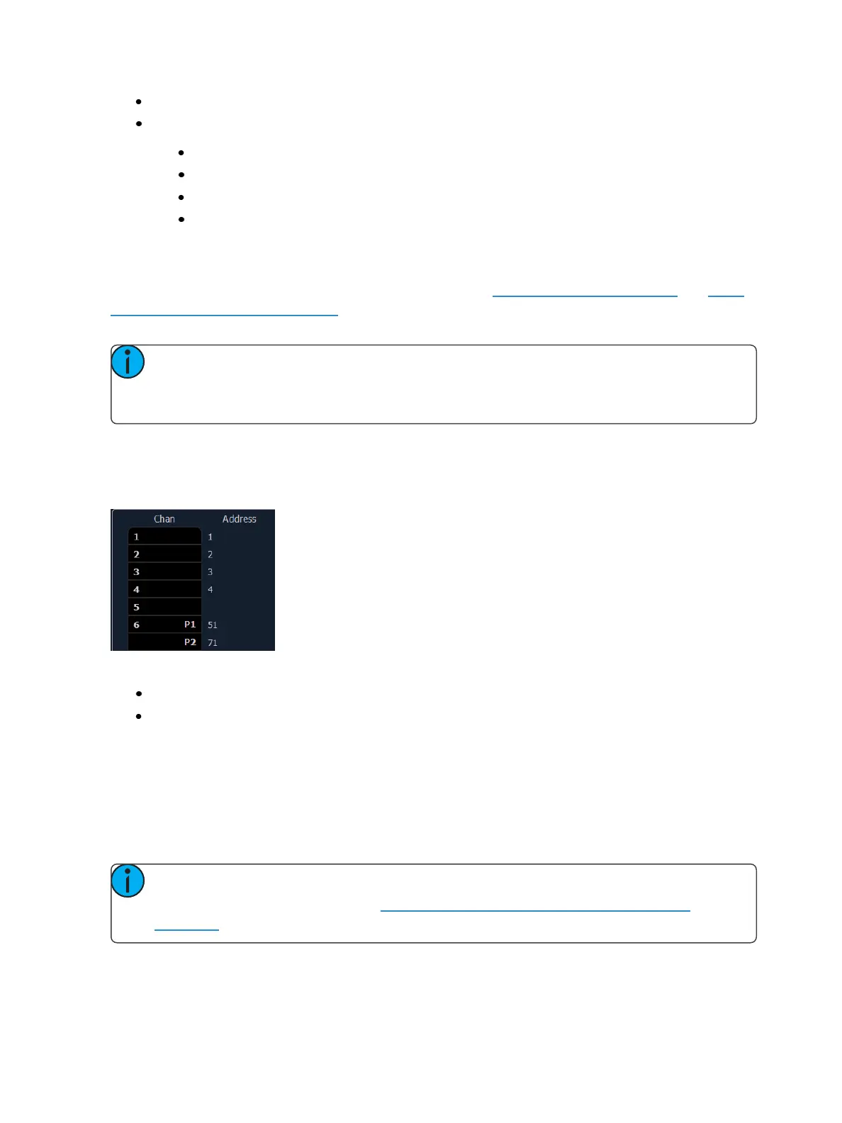 For patching fixtures, there are two different patch modes: Patching By Channel (below) and Patch-
