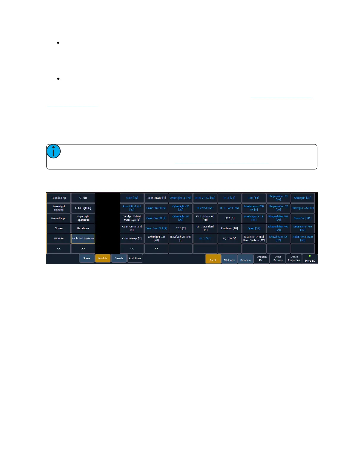 already patched in the show, your favorites, and default devices. {Manfctr} shows all fixtures or