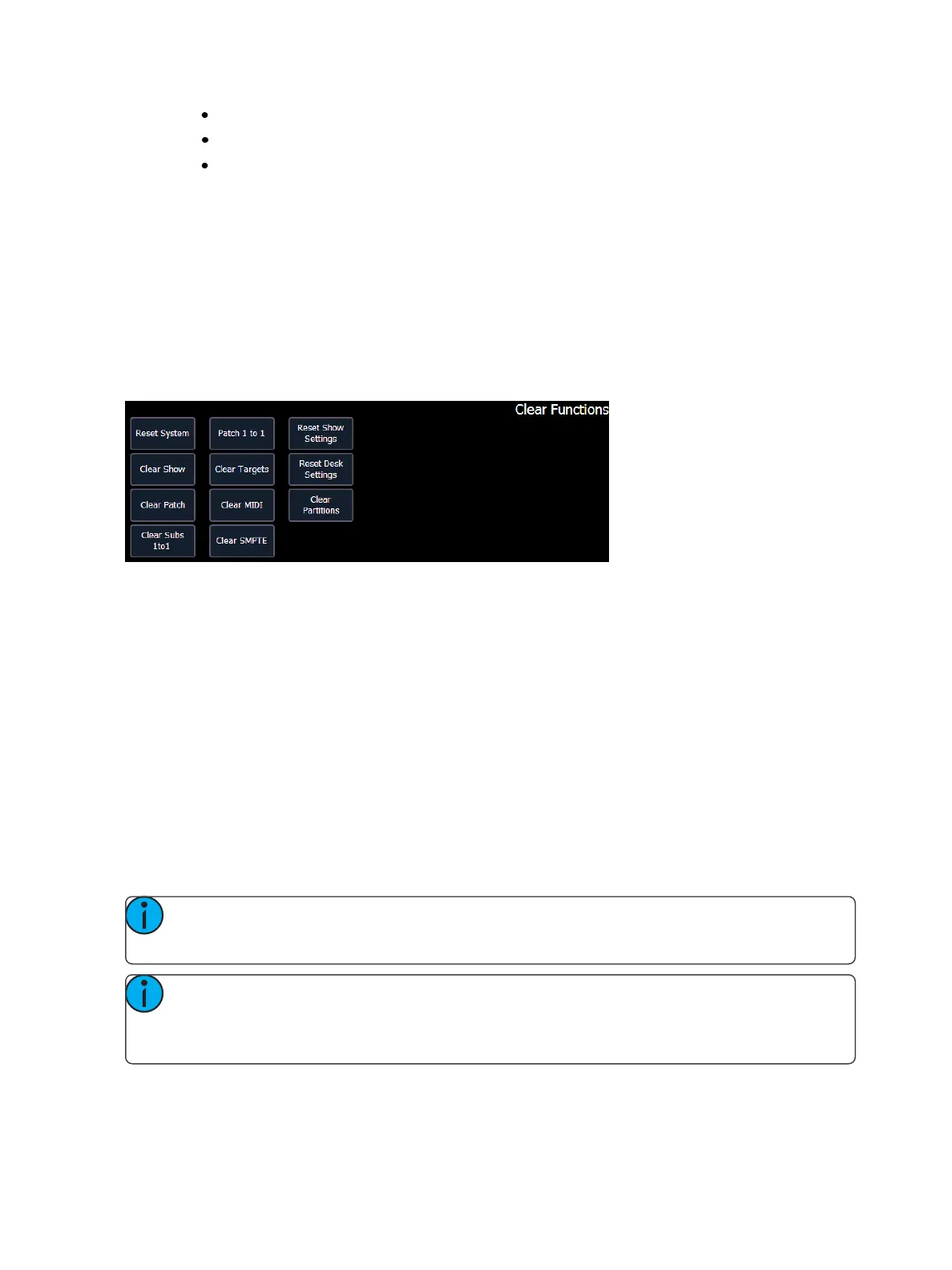 To exit the clear functions screen without clearing, press the [Displays] key at any time or select a