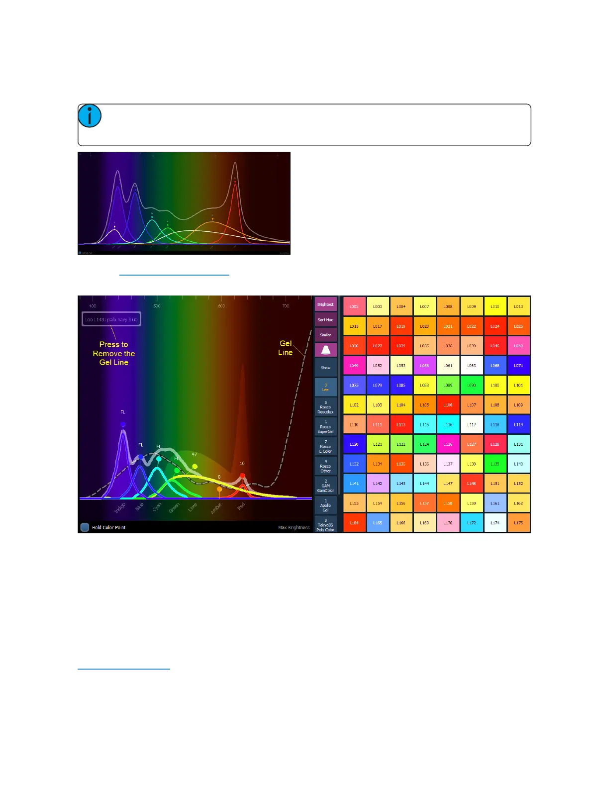 With the Gel Picker (on page167) open and a gel selected, a dotted line will appear in the Spectrum