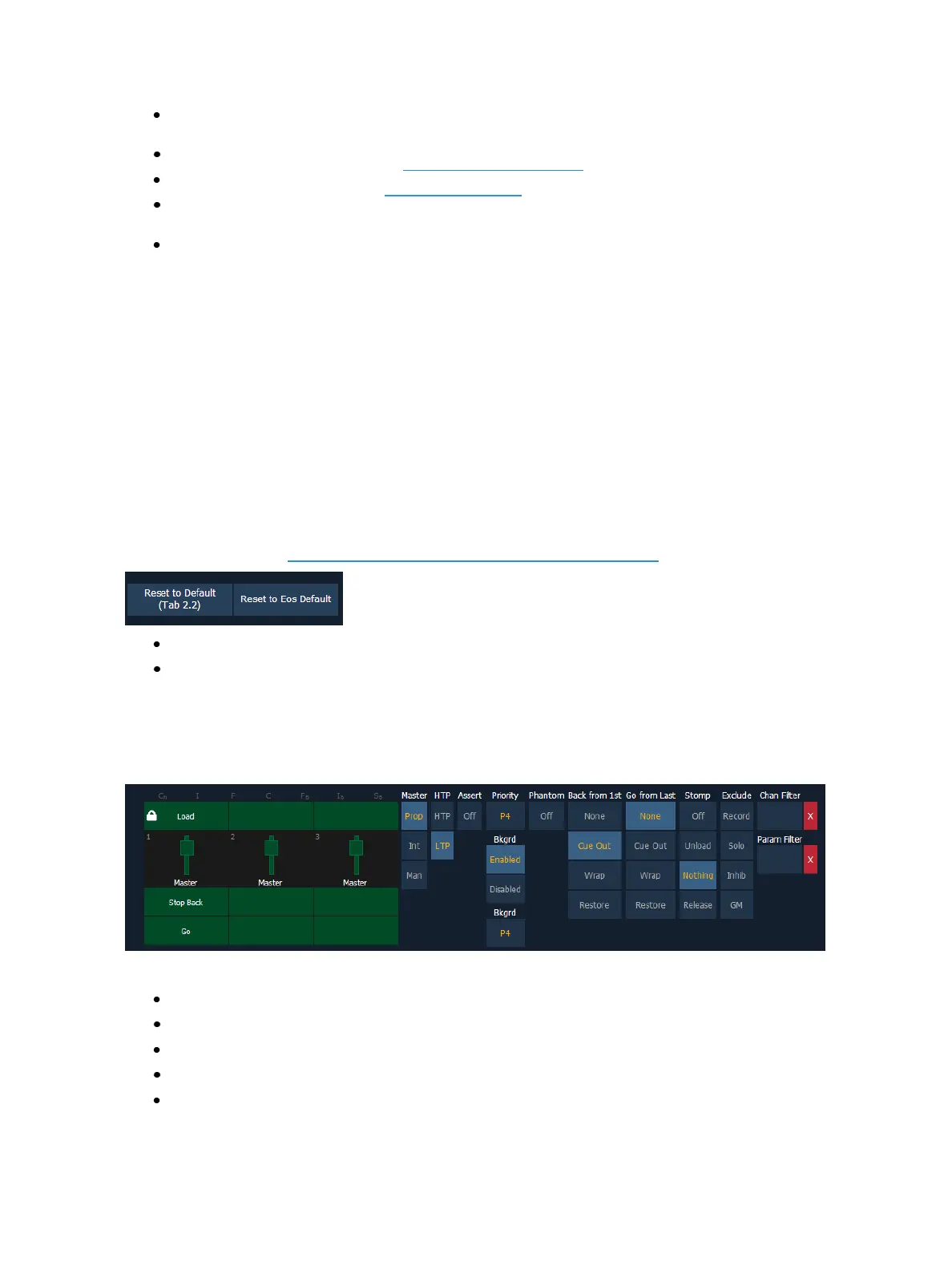 Reset to Eos Default - returns all settings to the Eos defaults.