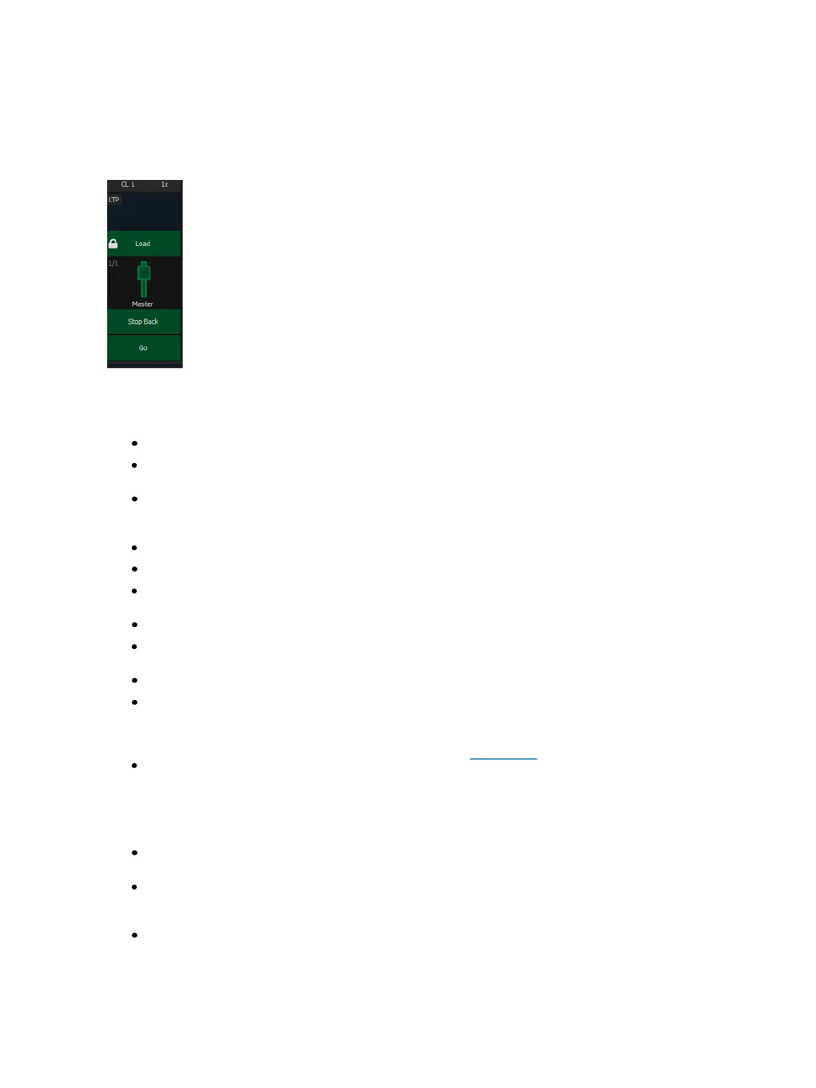 Stop Back - instantly stops all fader activity. Pressing twice will fade to the previous cue on