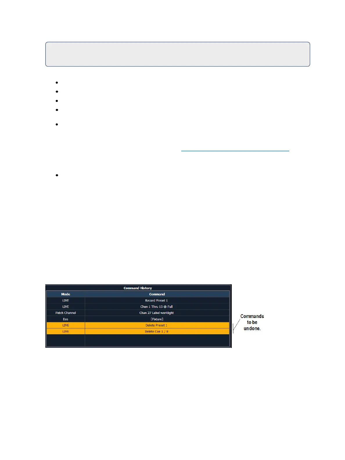 [Undo] to reverse any command that results in a change to data that would be saved to the show file