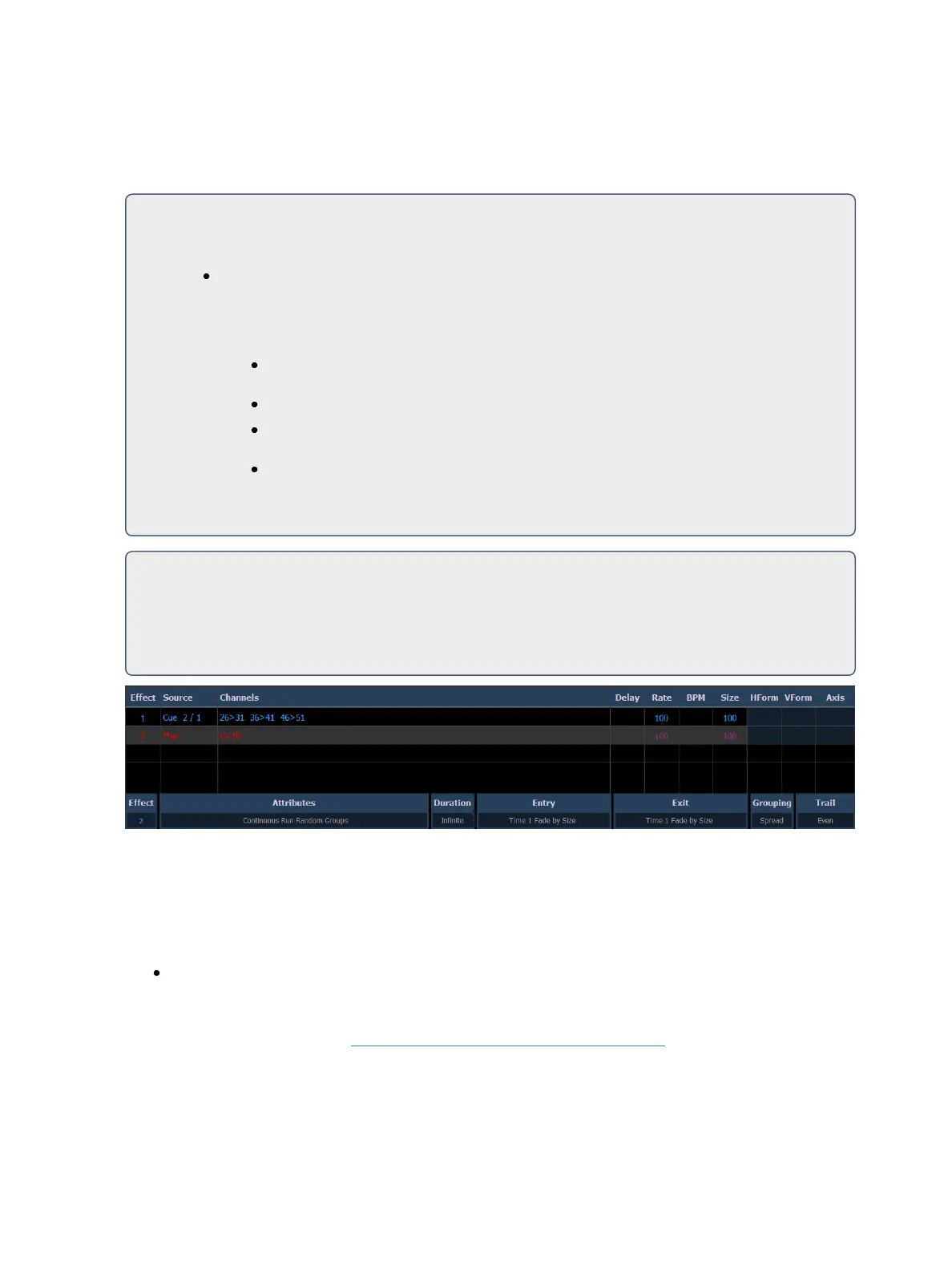 The properties of an effect that can be modified at a cue or sub level will display at the bottom of the