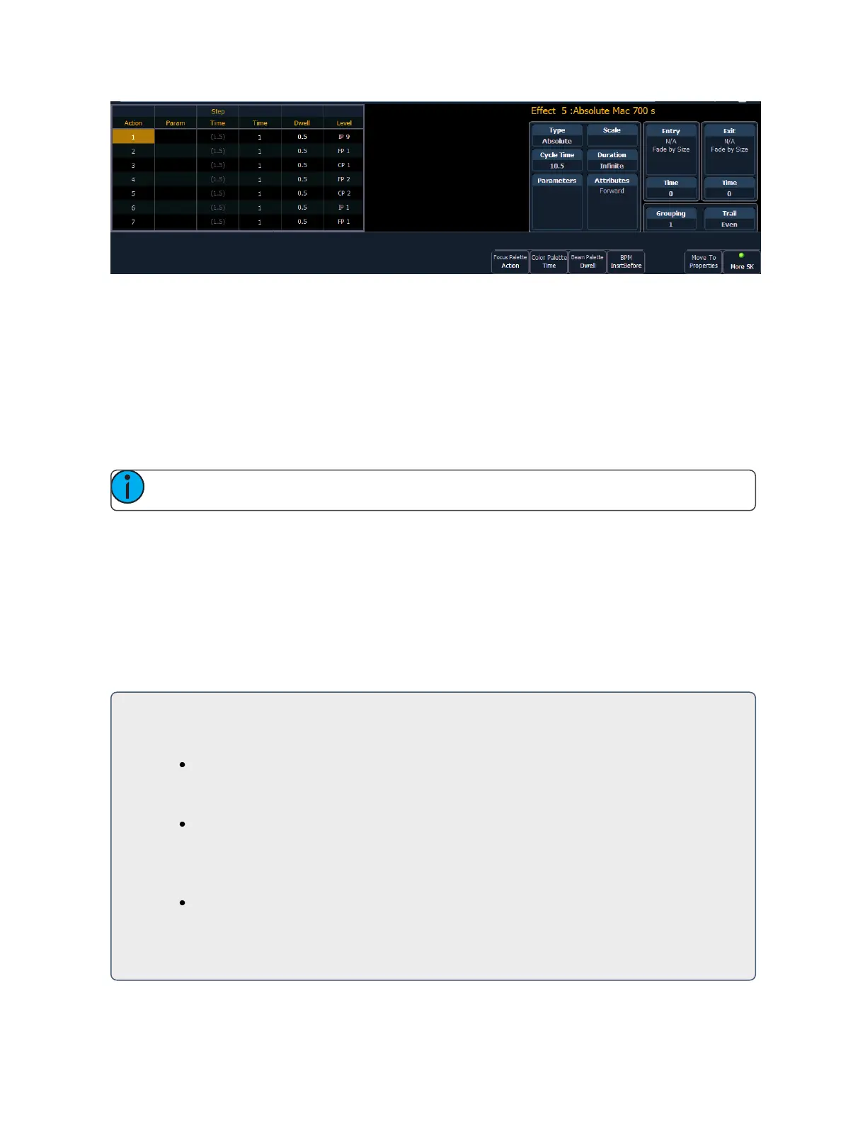 If no step time has been assigned, the action will begin once the fade and dwell times for the pre-