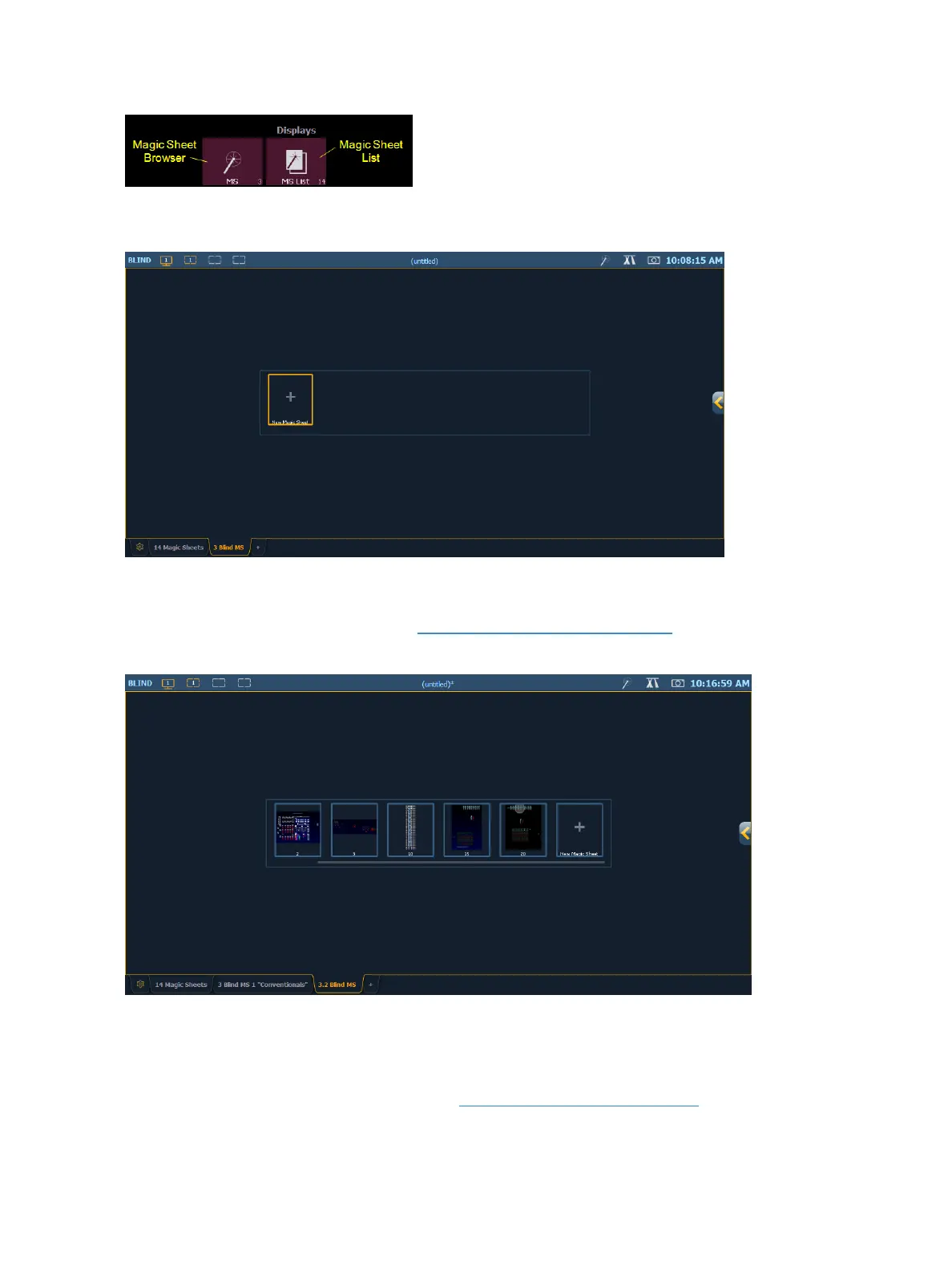 If no magic sheets exist in the show file, the magic sheet browser will be blank except for the New
