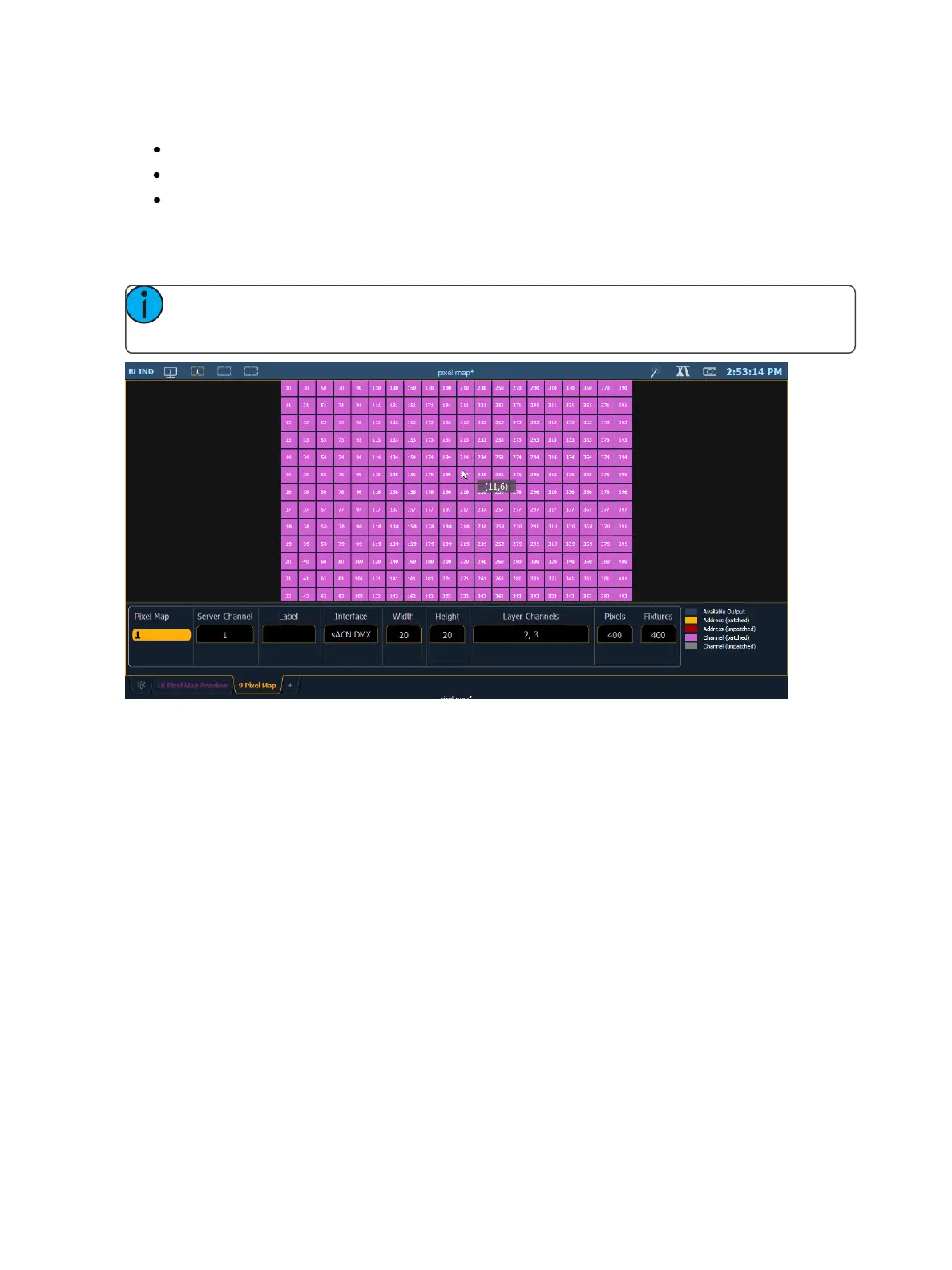 In this display you can also label the pixel map, assign the interfaces it will use, and adjust the width