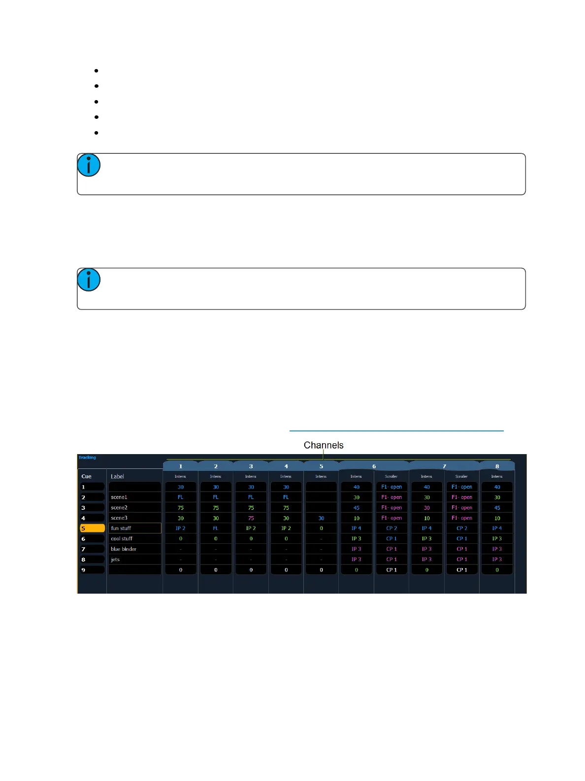 for multiple cues, submasters, palettes, or presets at one time. Cues/ record targets are displayed on